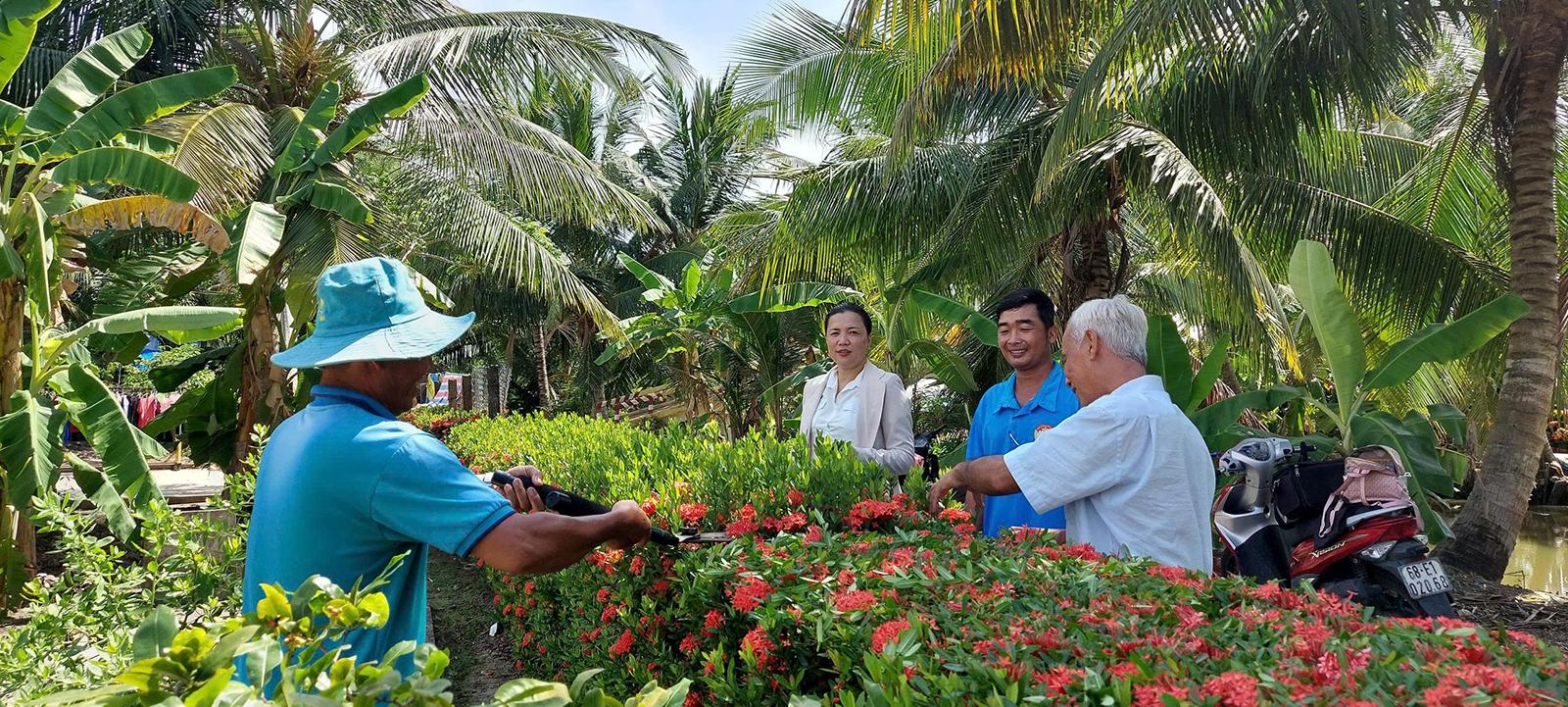 Người dân xã Định Hòa tích cực làm hàng rào cây xanh, góp phần tạo diện mạo nông thôn mới xanh, sạch, đẹp. Ảnh: CẨM TÚ