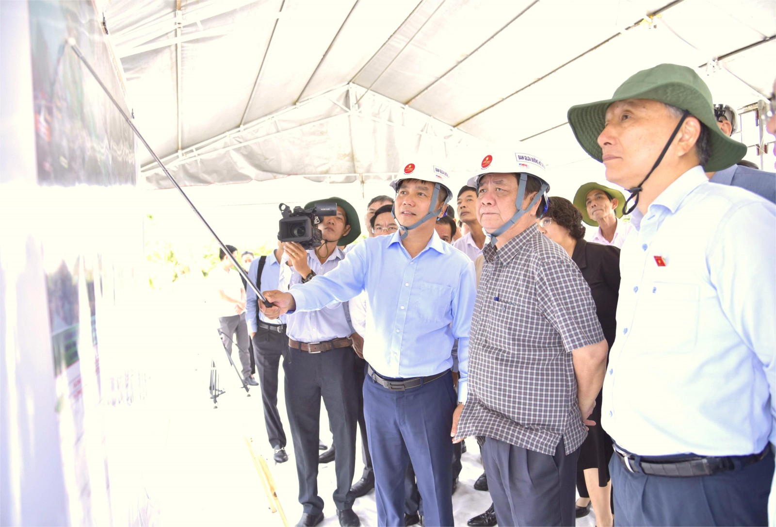 Phó Chủ tịch Quốc hội Lê Minh Hoan khảo sát thực tế đường Hồ Chí Minh tại xã Vĩnh Tuy.