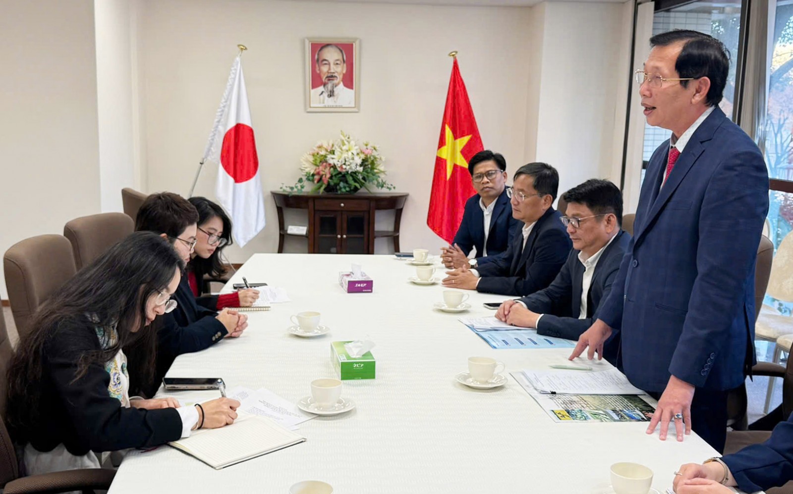 Phát biểu tại buổi chào xã giao, Chánh Văn phòng Tổng Lãnh sự quán Việt Nam tại Nhật Bản Nguyễn Minh Ánh gửi lời chào đoàn công tác của tỉnh An Giang đã sang thăm Tổng Lãnh sự quán tại Osaka. Đây là dịp để tăng cường giao lưu, kết nối giữa tỉnh An Giang và cộng đồng người Việt Nam tại Nhật Bản.