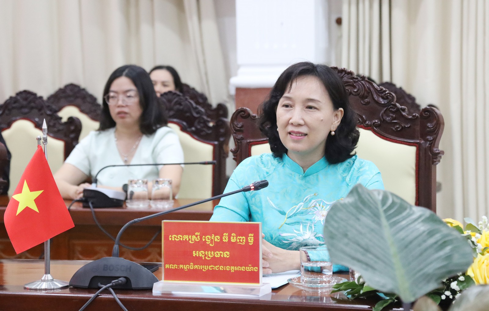 Phó Chủ tịch UBND tỉnh An Giang Nguyễn Thị Minh Thúy nhấn mạnh, Đảng và Nhà nước Việt Nam luôn coi trọng và ưu tiên cao việc củng cố, tăng cường quan hệ láng giềng tốt đẹp, hữu nghị truyền thống, hợp tác toàn diện, bền vững lâu dài giữa Việt Nam và Campuchia, vì lợi ích của Nhân dân hai nước, vì hòa bình, ổn định và phát triển chung.
