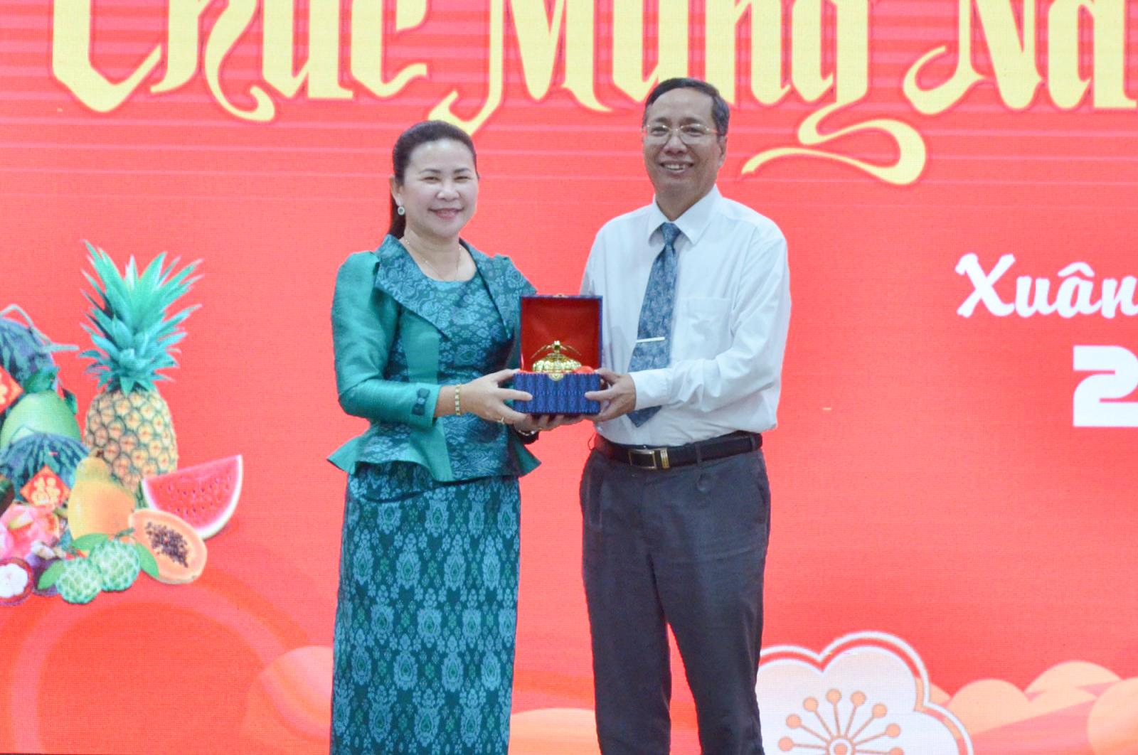 Đại biểu tỉnh Kandal tặng quà cho đại biểu tỉnh An Giang.