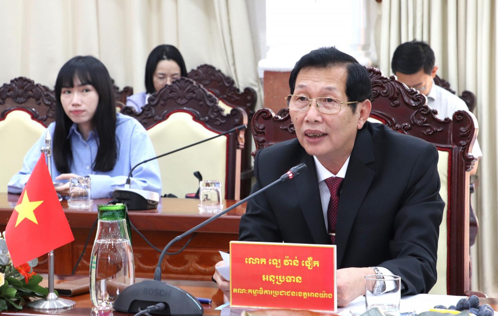 Tiếp tục trao đổi, nghiên cứu và hợp tác trên các lĩnh vực có tiềm năng, phù hợp với nhu cầu và lợi ích của mỗi bên; đồng thời triển khai hiệu quả các nội dung hợp tác đã được thống nhất tại Hội nghị Hợp tác và Phát triển các tỉnh biên giới Việt Nam - Campuchia lần thứ 13, góp phần đưa hai tỉnh phát triển nhanh và bền vững.