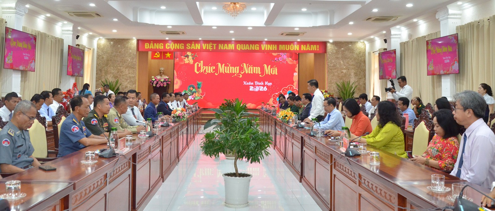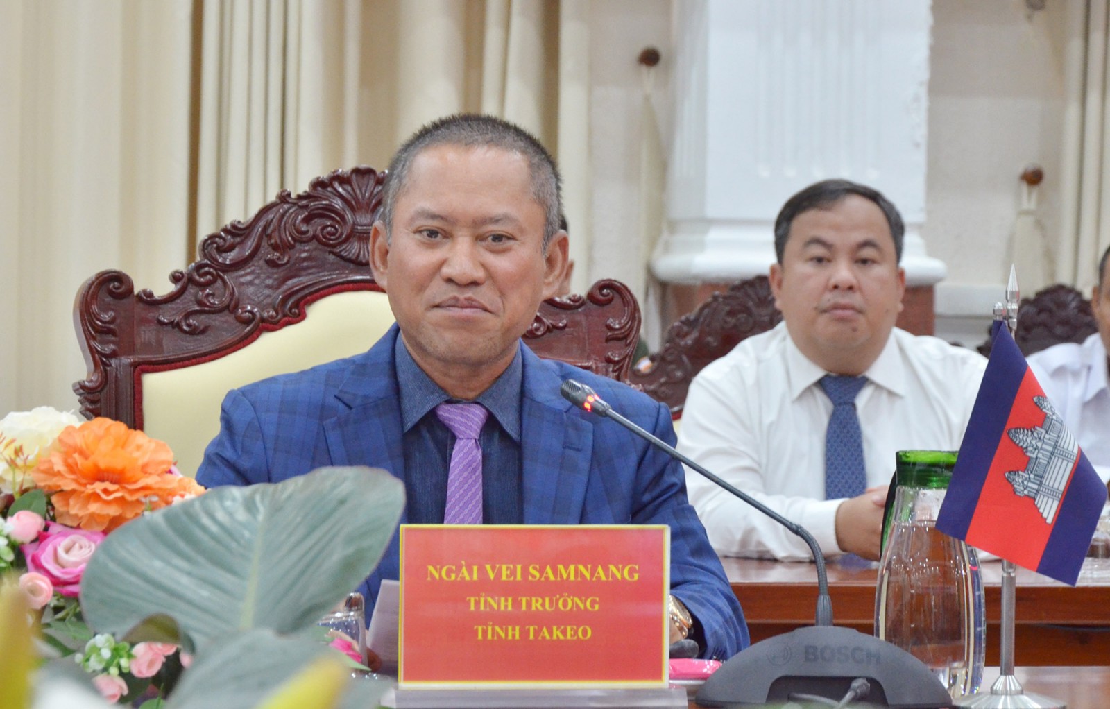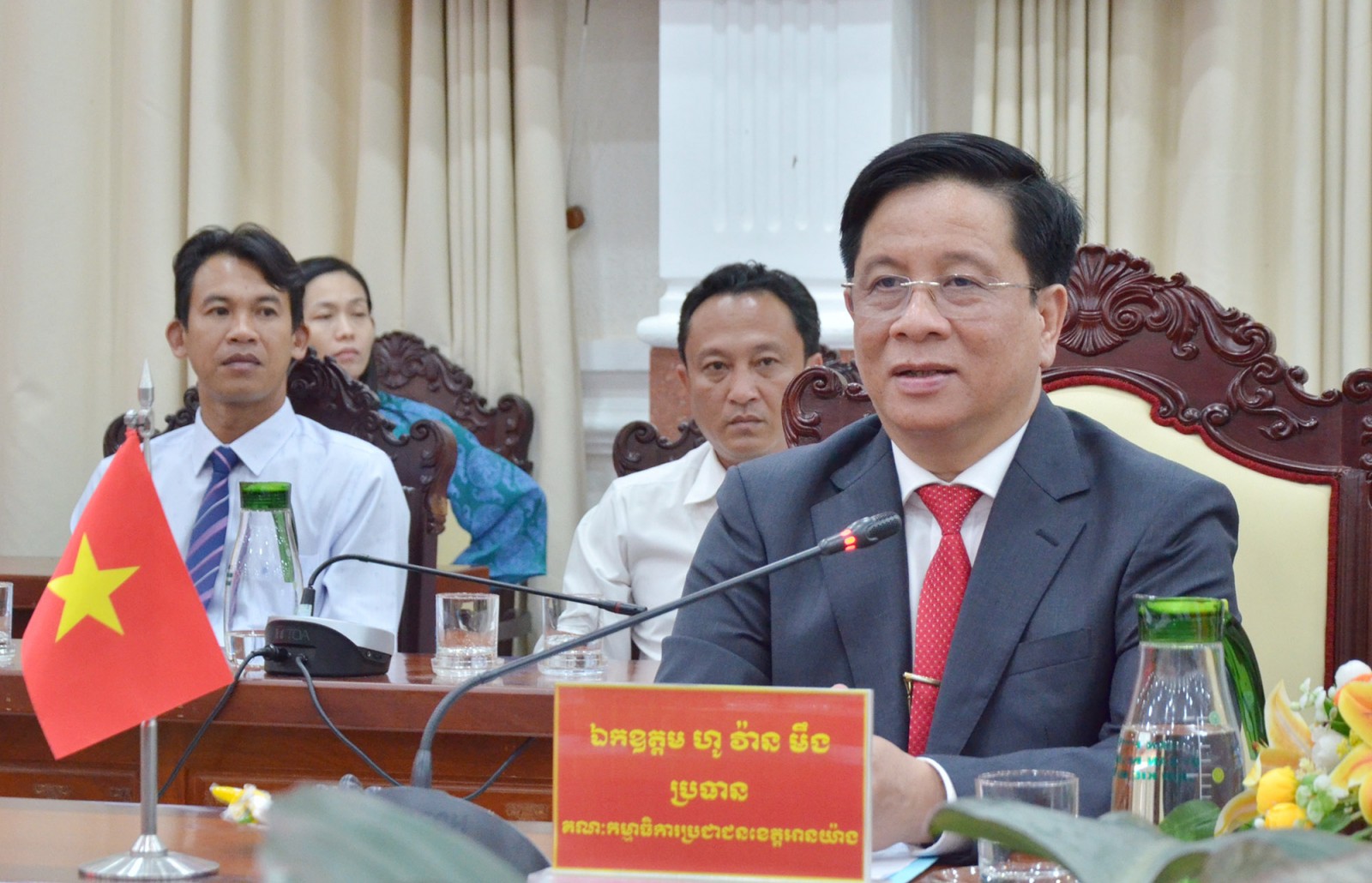 Phát biểu tại buổi đón tiếp, thay mặt lãnh đạo tỉnh An Giang, Chủ tịch UBND tỉnh An Giang Hồ Văn Mừng trân trọng cảm ơn tình cảm của ngài tỉnh trưởng cùng chính quyền và nhân dân tỉnh Takeo dành cho Đảng bộ, chính quyền và nhân dân tỉnh An Giang nhân dịp Tết cổ truyền của dân tộc Việt Nam.