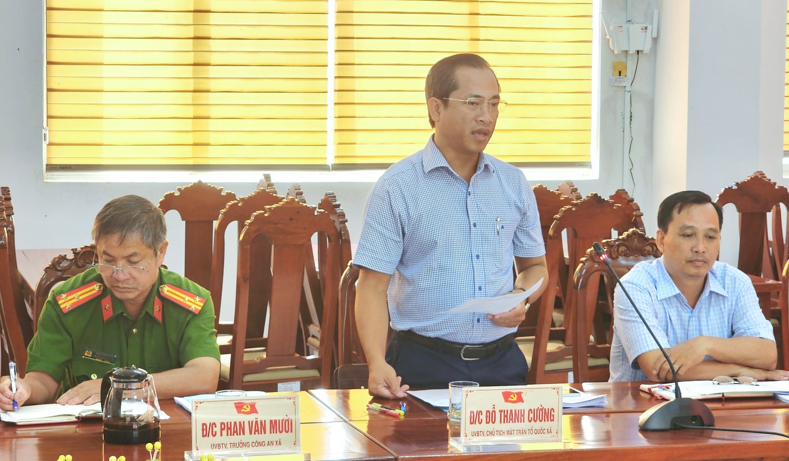 Chủ tịch Ủy ban MTTQ Việt Nam xã Tân Hiệp Đỗ Thanh Cường báo cáo cách làm hay trong tuyên truyền nghị quyết. Ảnh: TRẦN HIẾU