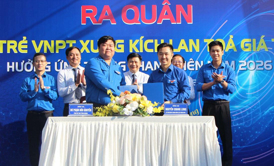 Tại lễ ra quân, Đoàn Thanh niên Tập đoàn VNPT và Tỉnh đoàn An Giang ký kết biên bản ghi nhớ hợp tác chuyển đổi số.