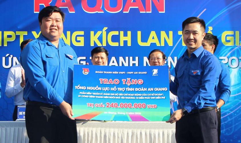 Dịp này, Đoàn Thanh niên Tập đoàn VNPT trao tặng tổng nguồn lực hỗ trợ Tỉnh đoàn An Giang trị giá 240 triệu đồng, gồm phần mềm “Quản lý, đánh giá bộ tiêu chí hoạt động của cơ sở đoàn”, lắp đặt 10 điểm phát wifi công cộng miễn phí trên địa bàn tỉnh An Giang và một ngôi nhà yêu thương.