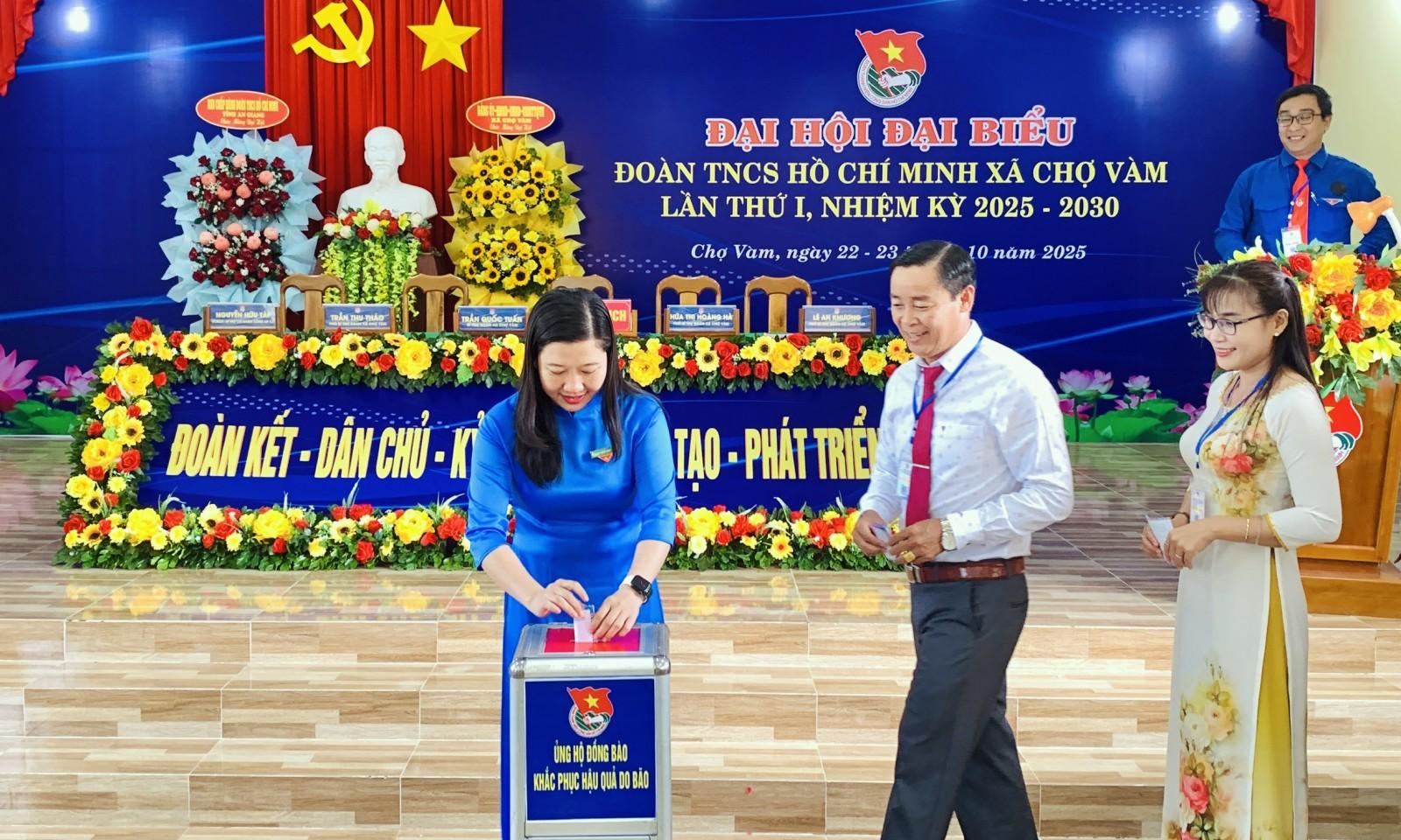 Đại hội công bố quyết định của Ban Thường vụ Tỉnh Đoàn An Giang chỉ định 19 đồng chí tham gia Ban Chấp hành khóa I; đồng chí Trần Quốc Tuấn giữ chức Bí thư Đoàn xã Chợ Vàm, nhiệm kỳ 2025 - 2030.