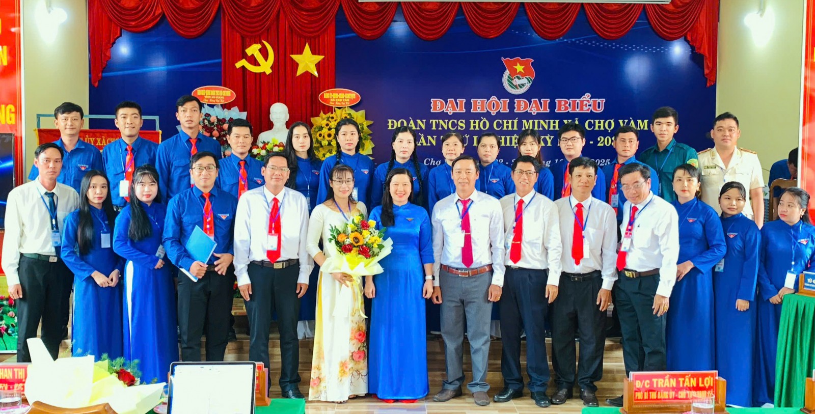Ban Chấp hành Đoàn xã Chợ Vàm chụp ảnh cùng đại biểu dự đại hội.