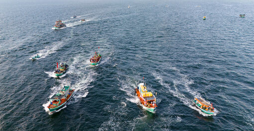 Kiệu Thần được cung thỉnh lên tàu ra biển làm lễ.