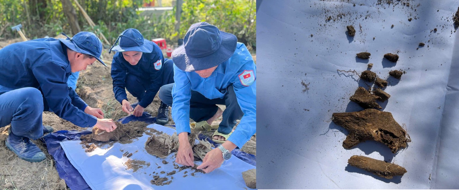 Qua khai quật, các hài cốt được tìm thấy trong tình trạng xương mục, vụn, kèm theo một số di vật.