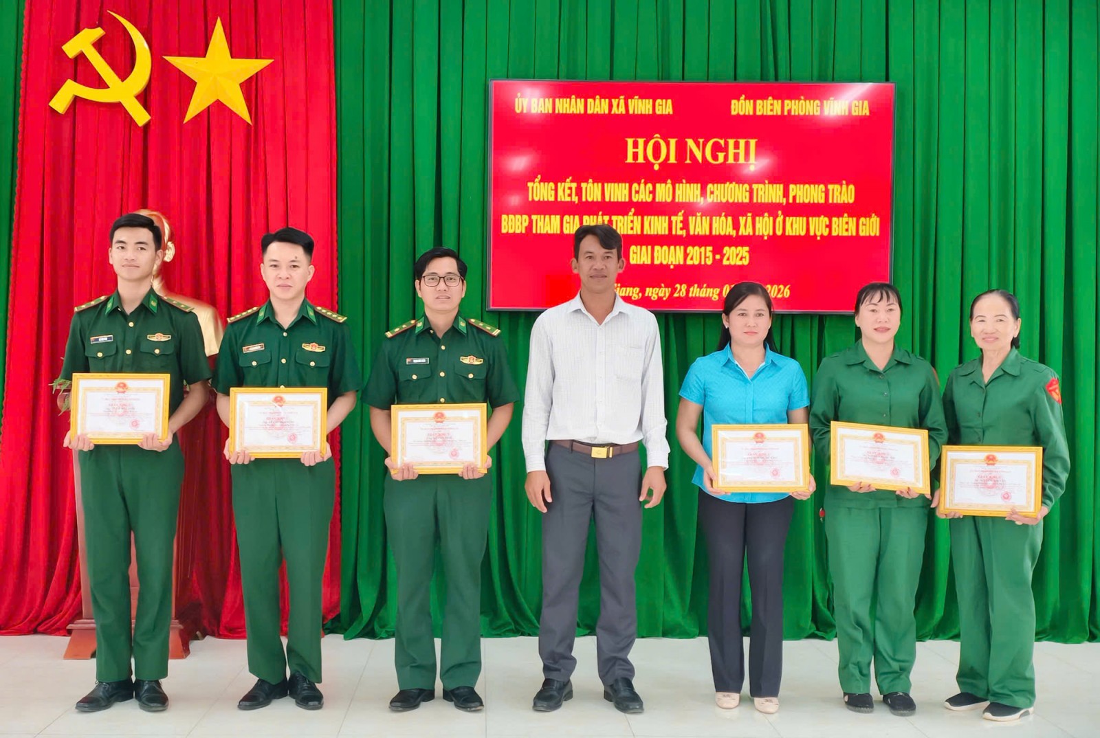 Đồn Biên phòng Vĩnh Gia đã hỗ trợ trên 6,75 tỷ đồng để thực hiện các mô hình: “Đảng viên Đồn Biên phòng phụ trách hộ gia đình”, “Tổ Phụ nữ tham gia tự quản đường biên, mốc quốc giới”. Thực hiện chương trình “Nâng bước em tới trường”, “Quân - Dân y kết hợp”, mô hình “Hũ gạo tình thương”, “Xuân Biên phòng ấm lòng dân bản”, “Đồng hành cùng phụ nữ biên cương”, “Mái ấm cho người nghèo nơi biên giới”…