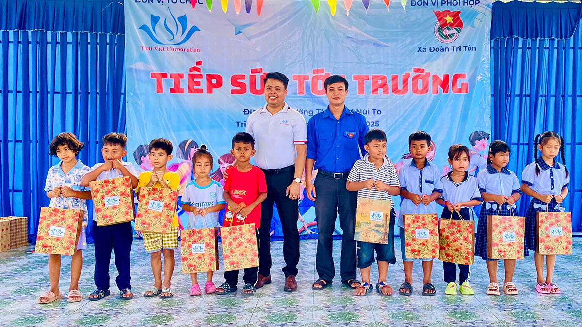 Xã đoàn Tri Tôn vận động hỗ trợ quà cho học sinh trước thềm năm học mới. Ảnh: ĐỨC TOÀN
