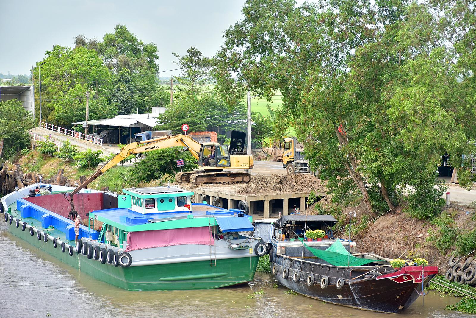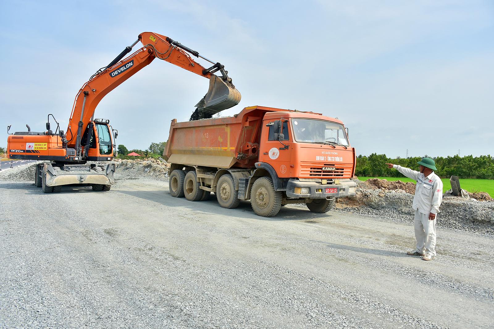Trên đoạn kênh dài hơn 1km, tiếng xe cuốc, tiếng đá đổ ràn rạt xuống khoang sà lan, tiếng người gọi nhau í ới tạo nên bức tranh lao động sôi động ngay từ đầu năm. Từ đây, vật liệu sẽ tỏa đi khắp các công trường, bảo đảm tiến độ thi công.