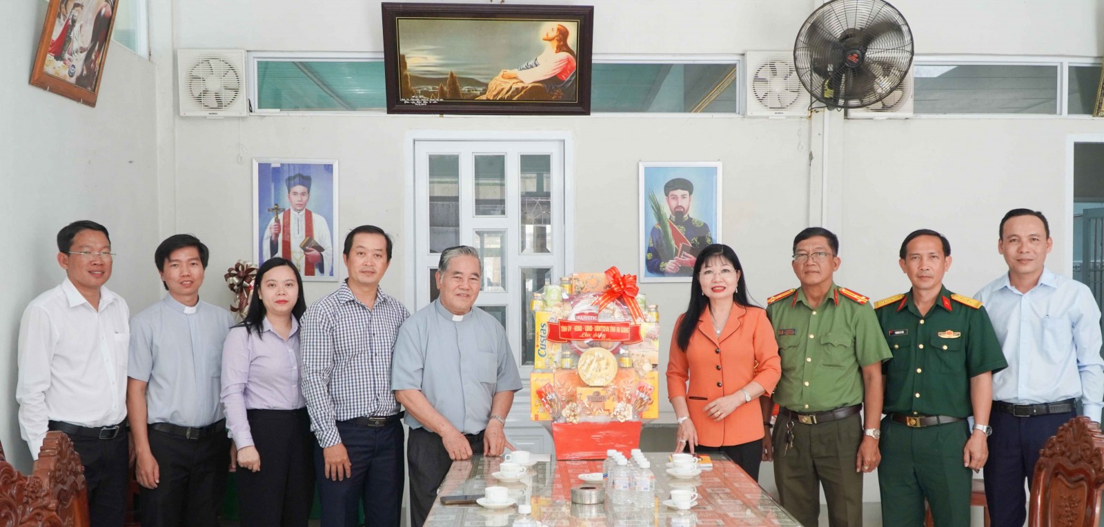 Đồng chí Trần Thị Thanh Hương cùng đoàn công tác thăm, chúc mừng Giáo xứ Trung Thành (xã Thạnh Đông), dịp lễ Giáng sinh.