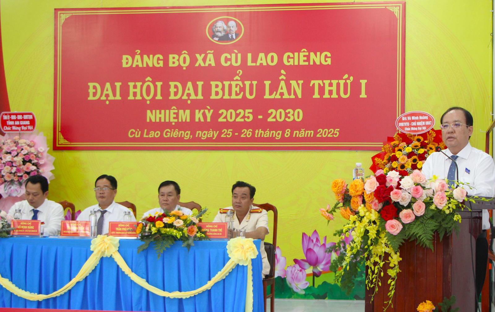 Ngày 25 và 26/8, Đảng bộ xã Cù Lao Giêng (tỉnh An Giang) tổ chức Đại hội đại biểu lần thứ I, nhiệm kỳ 2025 - 2030. Ủy viên Ban Thường vụ Tỉnh ủy, Phó Chủ tịch Thường trực UBND tỉnh An Giang Nguyễn Thanh Phong dự và chỉ đạo đại hội.