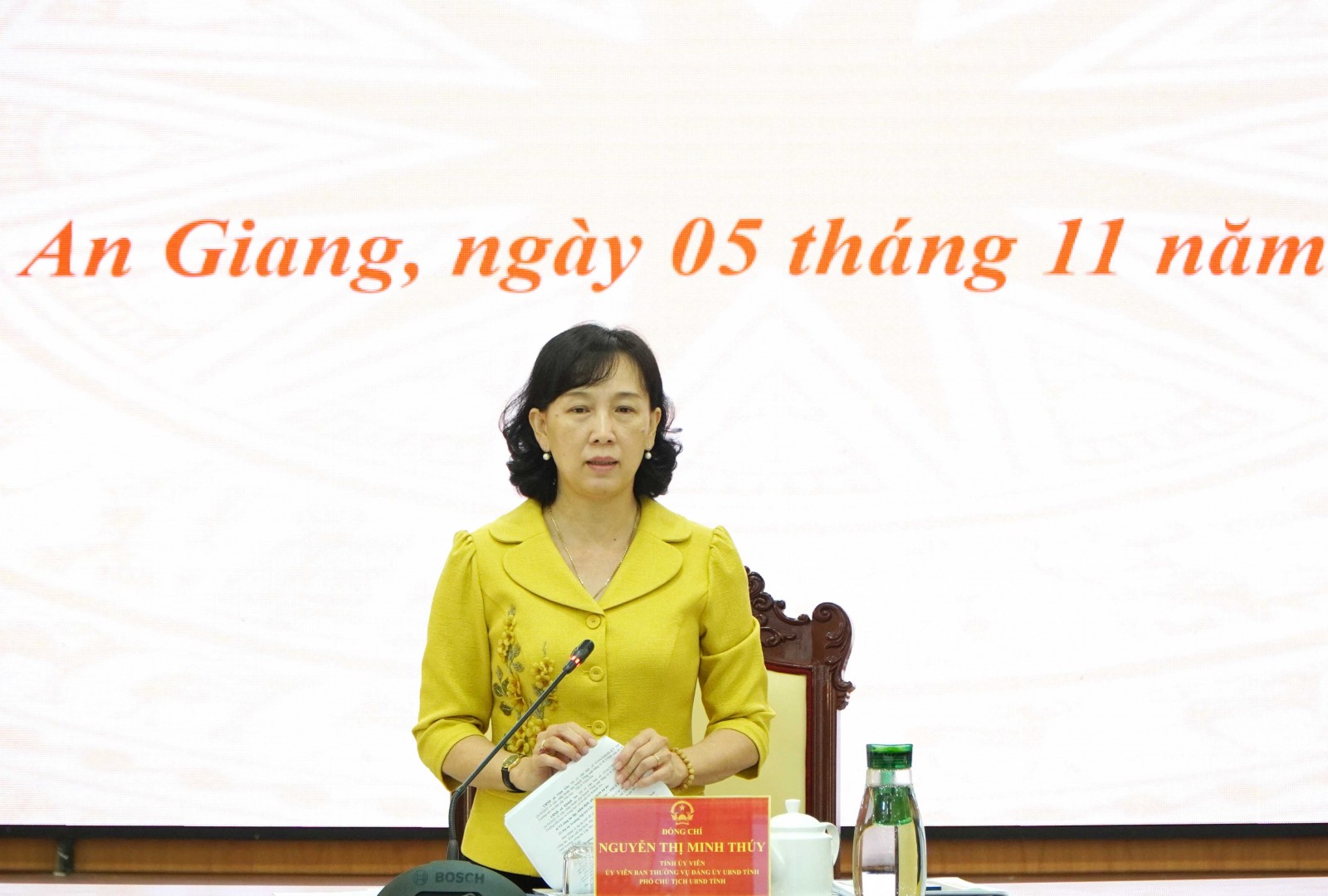 Phó Chủ tịch UBND tỉnh An Giang Nguyễn Thị Minh Thúy phát biểu kết luận buổi làm việc.