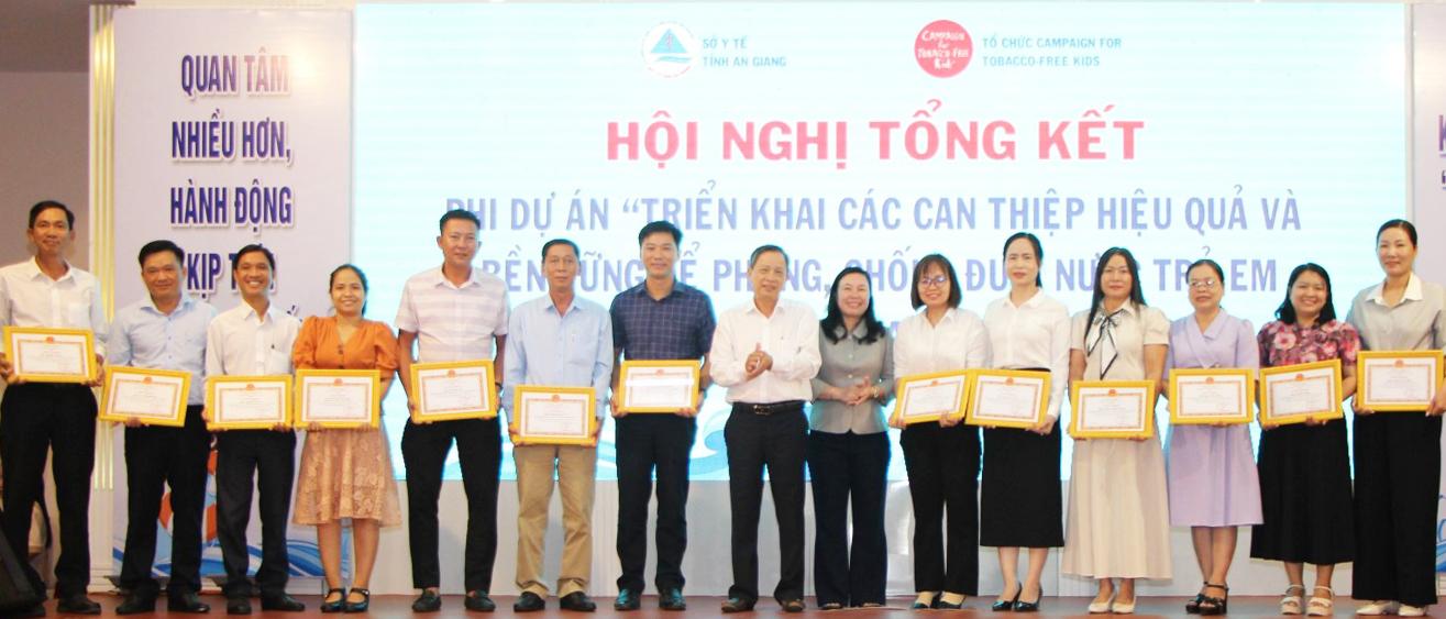 Dịp này, UBND tỉnh An Giang tặng bằng khen 2 cá nhân; Sở Y tế tặng giấy khen 15 cá nhân có nhiều thành tích trong công tác phòng, chống đuối nước cho trẻ em giai đoạn 2024 - 2026.