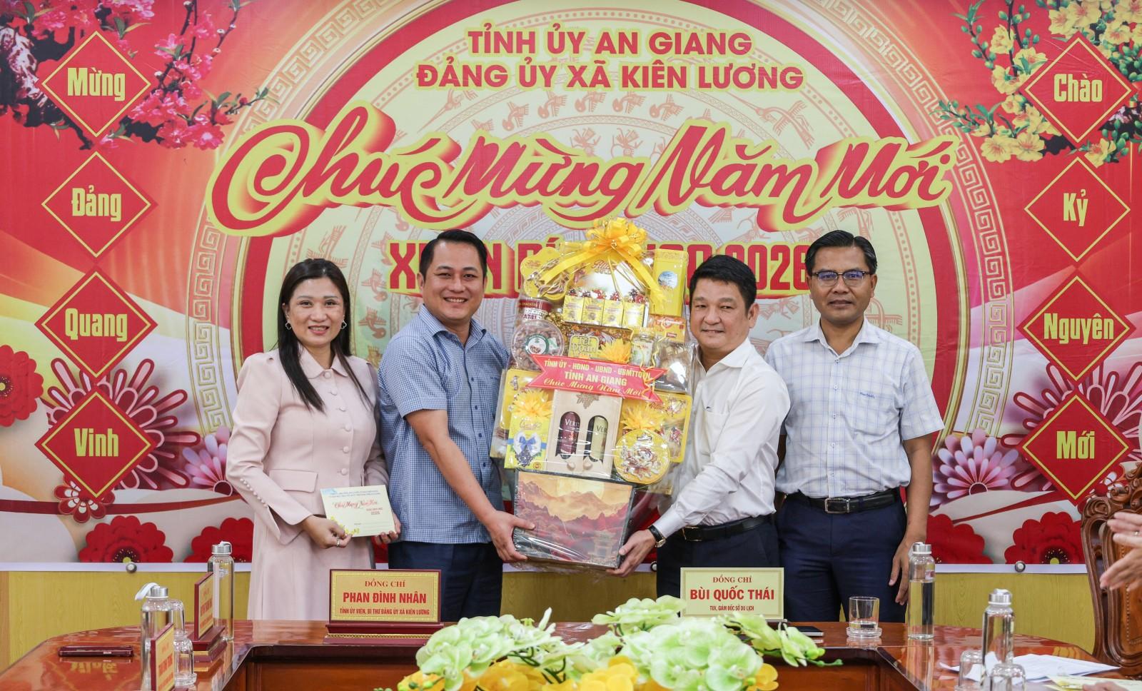 Giám đốc Sở Du lịch tỉnh An Giang Bùi Quốc Thái chúc tết, tặng quà Đảng ủy, HĐND, UBND, Ủy ban MTTQ Việt Nam xã Kiên Lương, chiều 5/2.