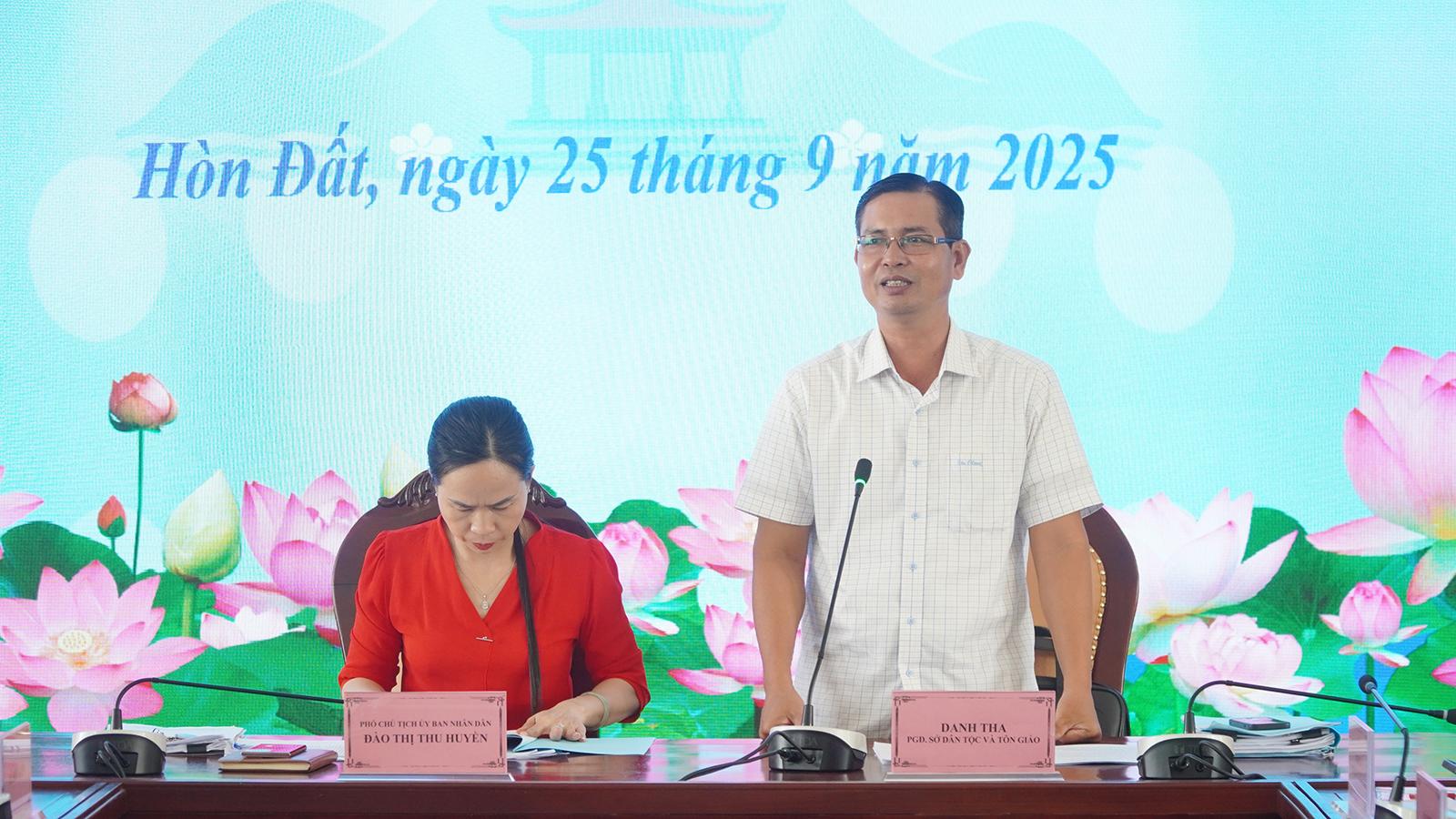 Sáng 25/9, đoàn giám sát do Phó Giám đốc Sở Dân tộc và Tôn giáo tỉnh An Giang Danh Tha làm trưởng đoàn có buổi giám sát, đánh giá việc thực hiện chương trình mục tiêu quốc gia về phát triển kinh tế - xã hội vùng đồng bào dân tộc thiểu số và miền núi năm 2025 trên địa bàn các xã Hòn Đất, Bình Giang, Sơn Kiên và Mỹ Thuận.