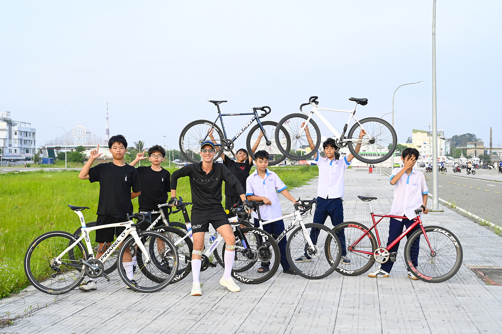Một nhóm bạn trẻ có sở thích xe đạp thể thao cũng chọn cảng hành khách làm điểm họp team.