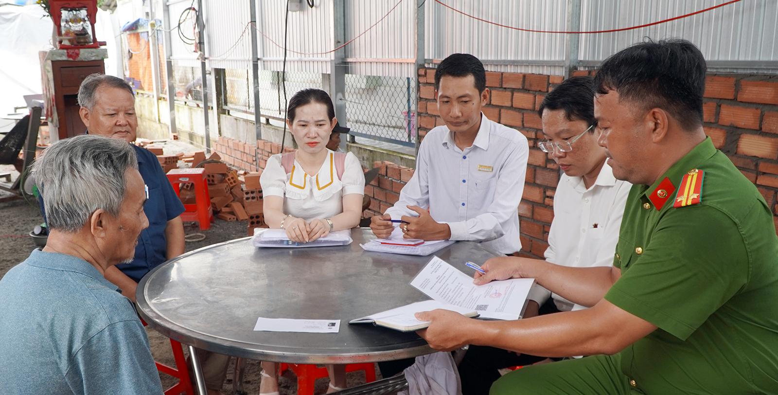 Cán bộ xã Tân Hội đến nhà dân hỗ trợ làm căn cước. Ảnh: THU OANH