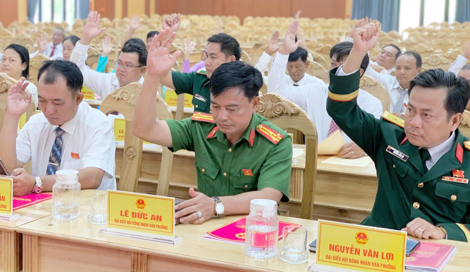 Đại biểu HĐND phường Hà Tiên biểu quyết thông qua các nghị quyết.