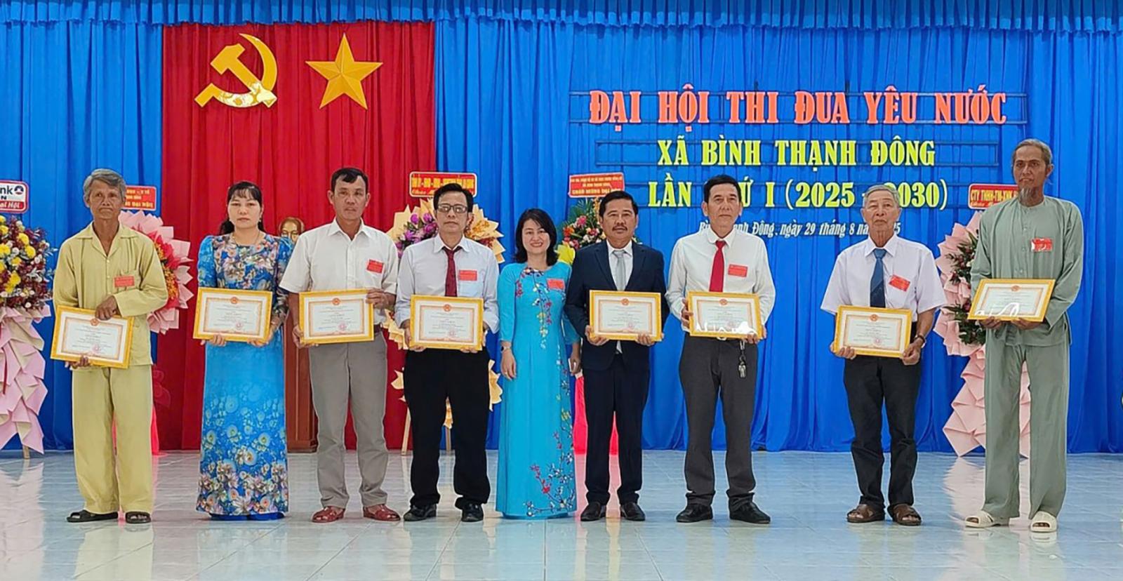 Tại hội nghị, có 7 tập thể và 10 cá nhân được UBND xã Bình Thạnh Đông khen thưởng vì có thành tích xuất sắc trong các phong trào thi đua yêu nước giai đoạn 2020 - 2025.