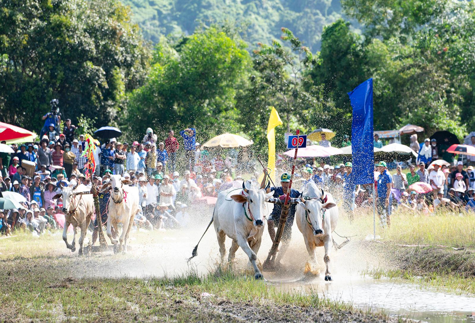 Các đôi bò tranh tài tại Hội đua bò Bảy Núi tranh cúp truyền hình An Giang năm 2025. Ảnh: LÊ TRUNG HIẾU