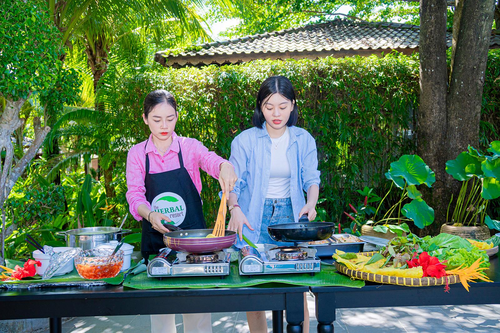 Tham gia tour “Chạm bếp - Chạm thiên nhiên” của Công ty Trách nhiệm hữu hạn Du lịch Vi Na Phú Quốc, du khách được hướng dẫn chế biến bánh xèo.