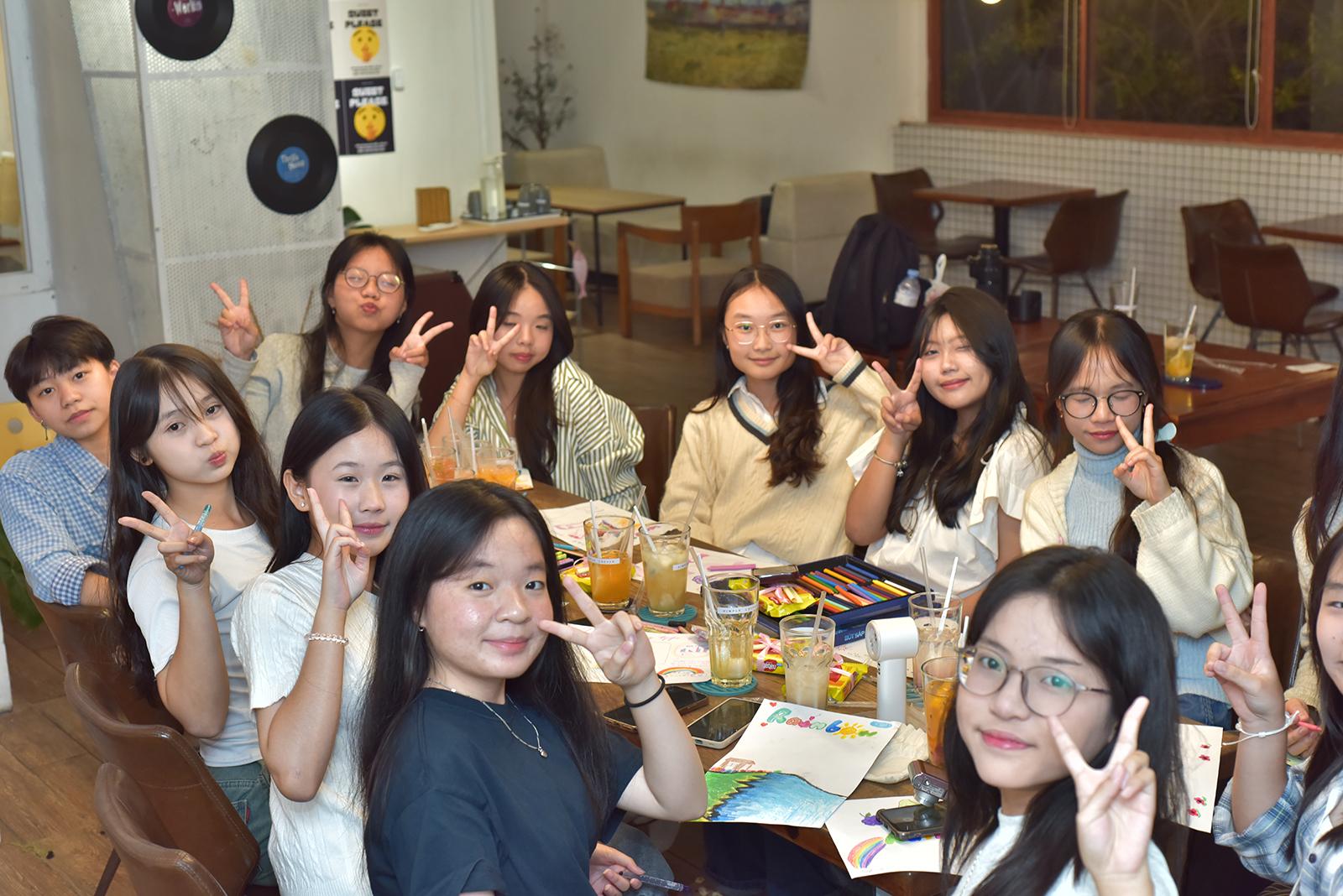 Các thành viên của Câu lạc bộ Hành trình Cầu vồng cùng tạo nên các sản phẩm thủ công phục vụ cho hoạt động gây quỹ. Ảnh: TƯỜNG VI