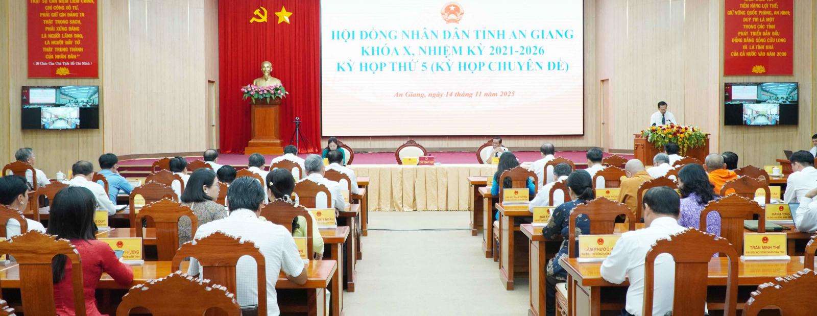 Kỳ họp được tổ chức theo hình thức trực tiếp kết hợp trực tuyến. Phó Bí thư Thường trực Tỉnh ủy, Chủ tịch HĐND tỉnh An Giang Nguyễn Thanh Nhàn và các Phó Chủ tịch HĐND tỉnh chủ tọa Kỳ họp thứ 5. Phó Bí thư Tỉnh ủy An Giang Lâm Minh Thành tham dự kỳ họp.