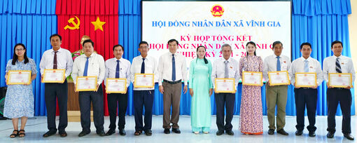 Dịp này, HĐND xã Vĩnh Gia khen thưởng 5 tập thể, 26 cá nhân có thành tích xuất sắc trong thực hiện nhiệm vụ nhiệm kỳ 2021 - 2026.