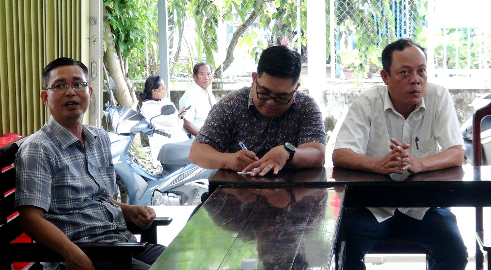 Chính quyền địa phương thông tin với đoàn về phương hướng giúp đồng bào Khmer sử dụng dịch vụ công trực tuyến.