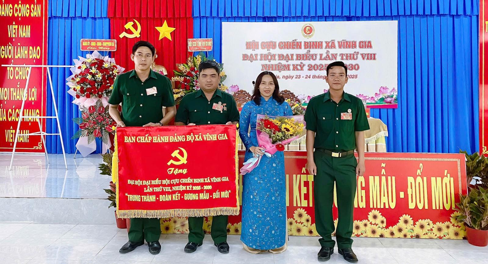Đại hội công bố quyết định của Ban Thường vụ Hội Cựu chiến binh tỉnh An Giang chỉ định Ban Chấp hành Hội Cựu chiến binh xã Vĩnh Gia gồm 15 đồng chí, Ban Thường vụ 5 đồng chí. Đồng chí Thái Thanh Huy giữ chức Chủ tịch Hội Cựu chiến binh xã Vĩnh Gia nhiệm kỳ 2025 - 2030.