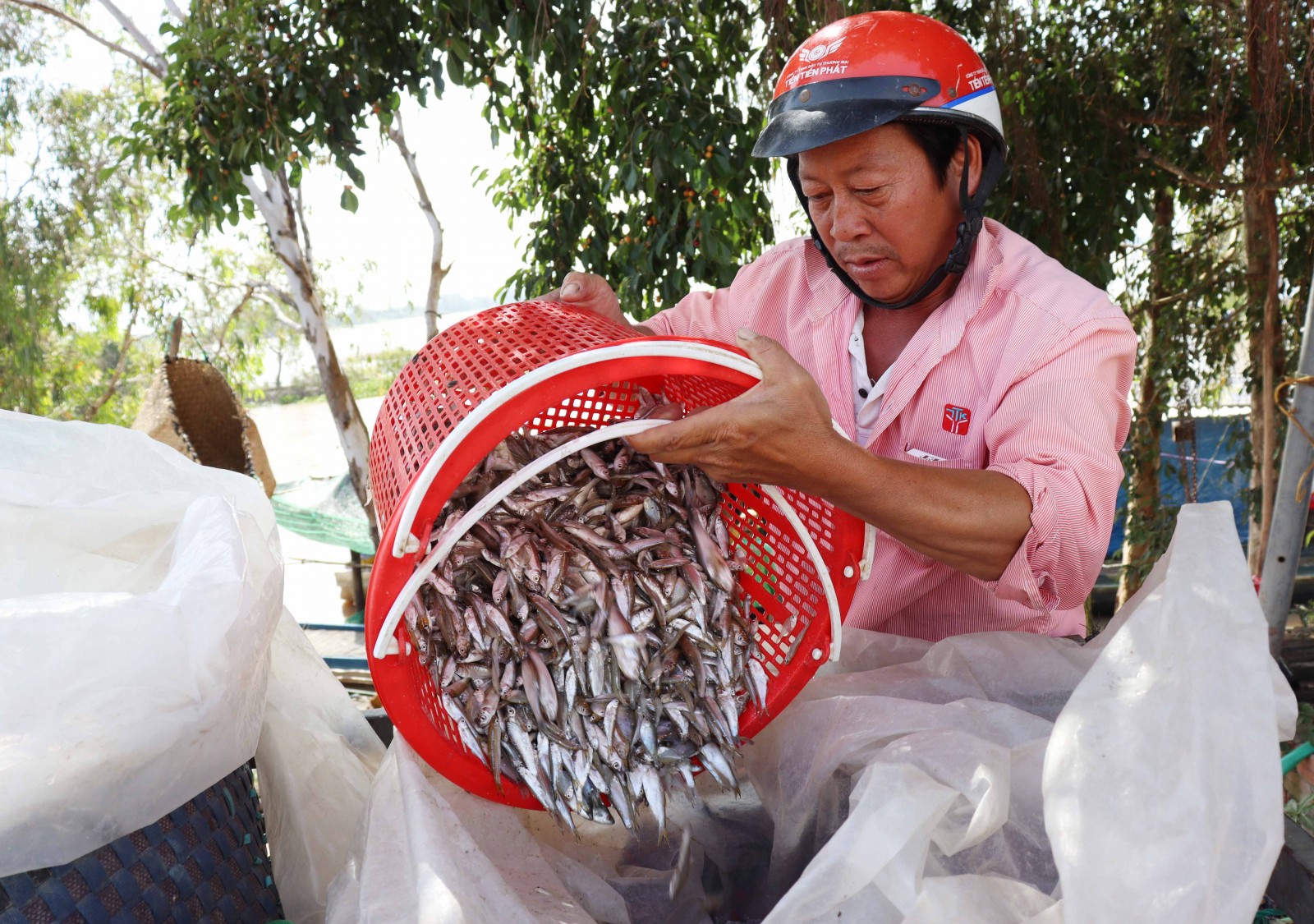 Tiểu thương thu mua cá cuối mùa nước nổi. Ảnh: THÀNH CHINH