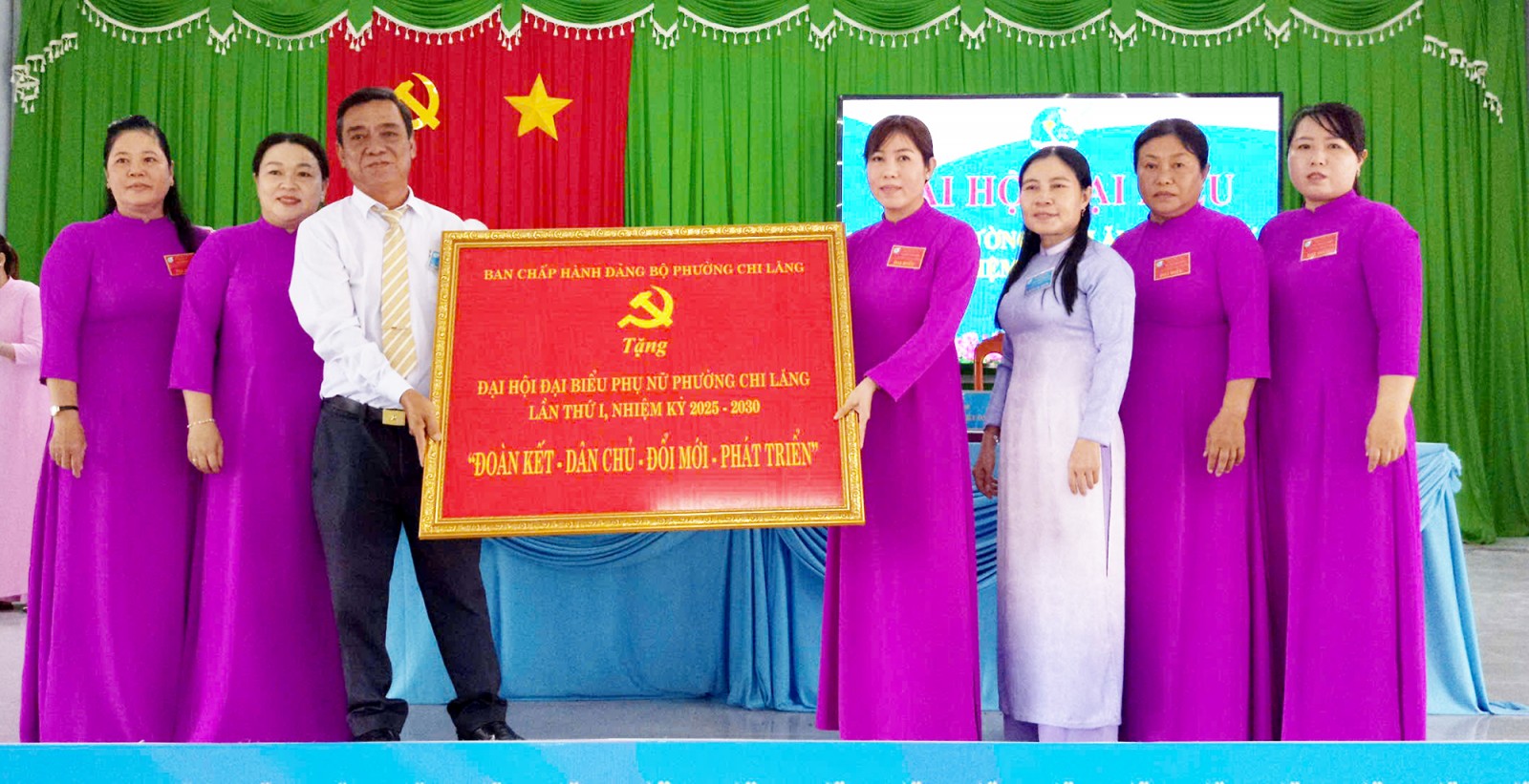 Ban Chấp hành Đảng bộ phường Chi Lăng tặng bức trướng chúc mừng đại hội.