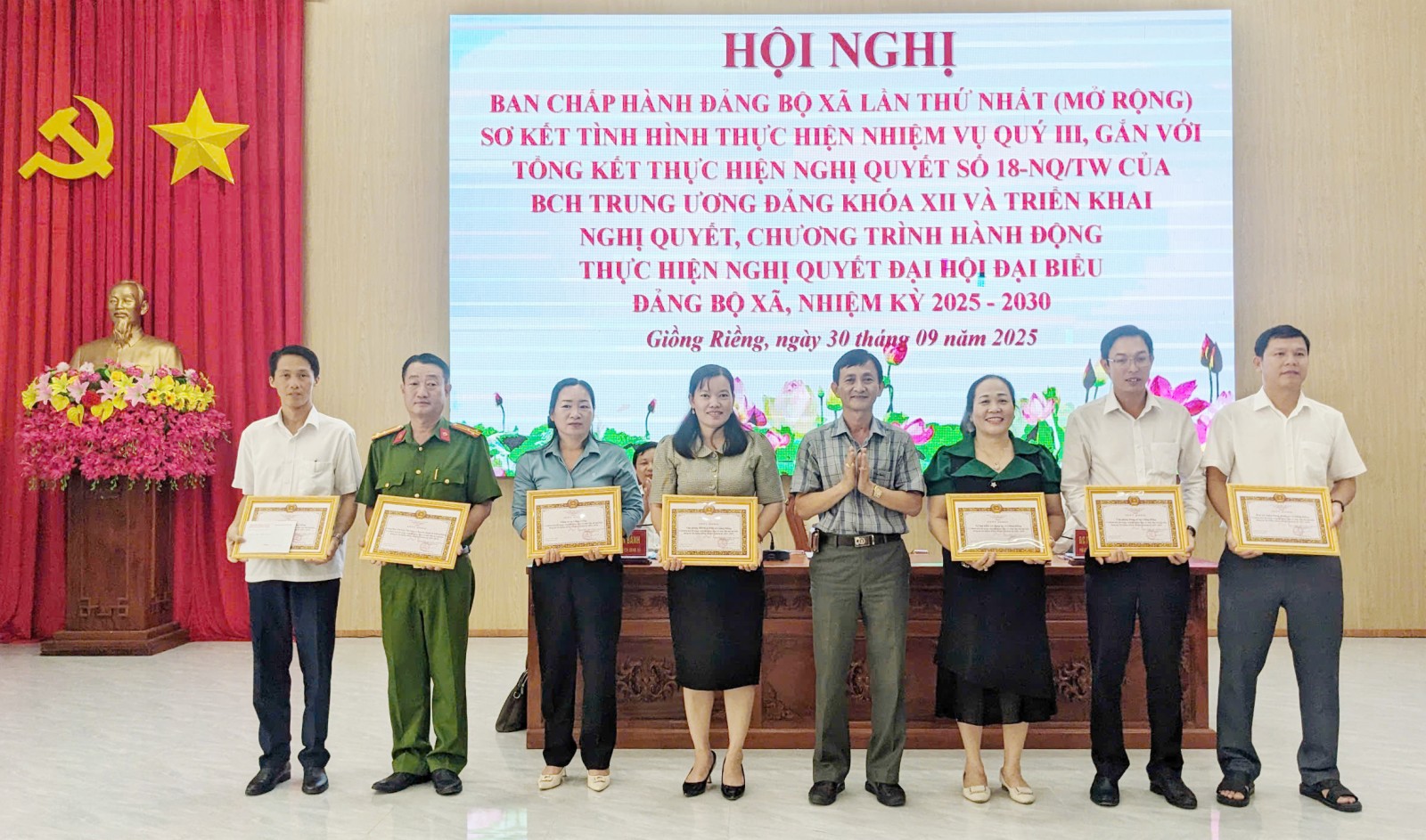 Ban Chấp hành Đảng bộ xã Giồng Riềng tổ chức Hội nghị lần thứ nhất (mở rộng) sơ kết tình hình thực hiện nhiệm vụ quý III/2025, gắn với tổng kết thực hiện Nghị quyết số 18-NQ/TW của Ban Chấp hành Trung ương khóa XII và triển khai Nghị quyết, chương trình hành động thực hiện Nghị quyết Đại hội Đảng bộ xã, nhiệm kỳ 2025 - 2030.