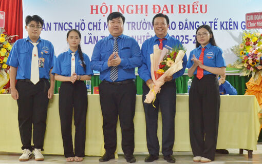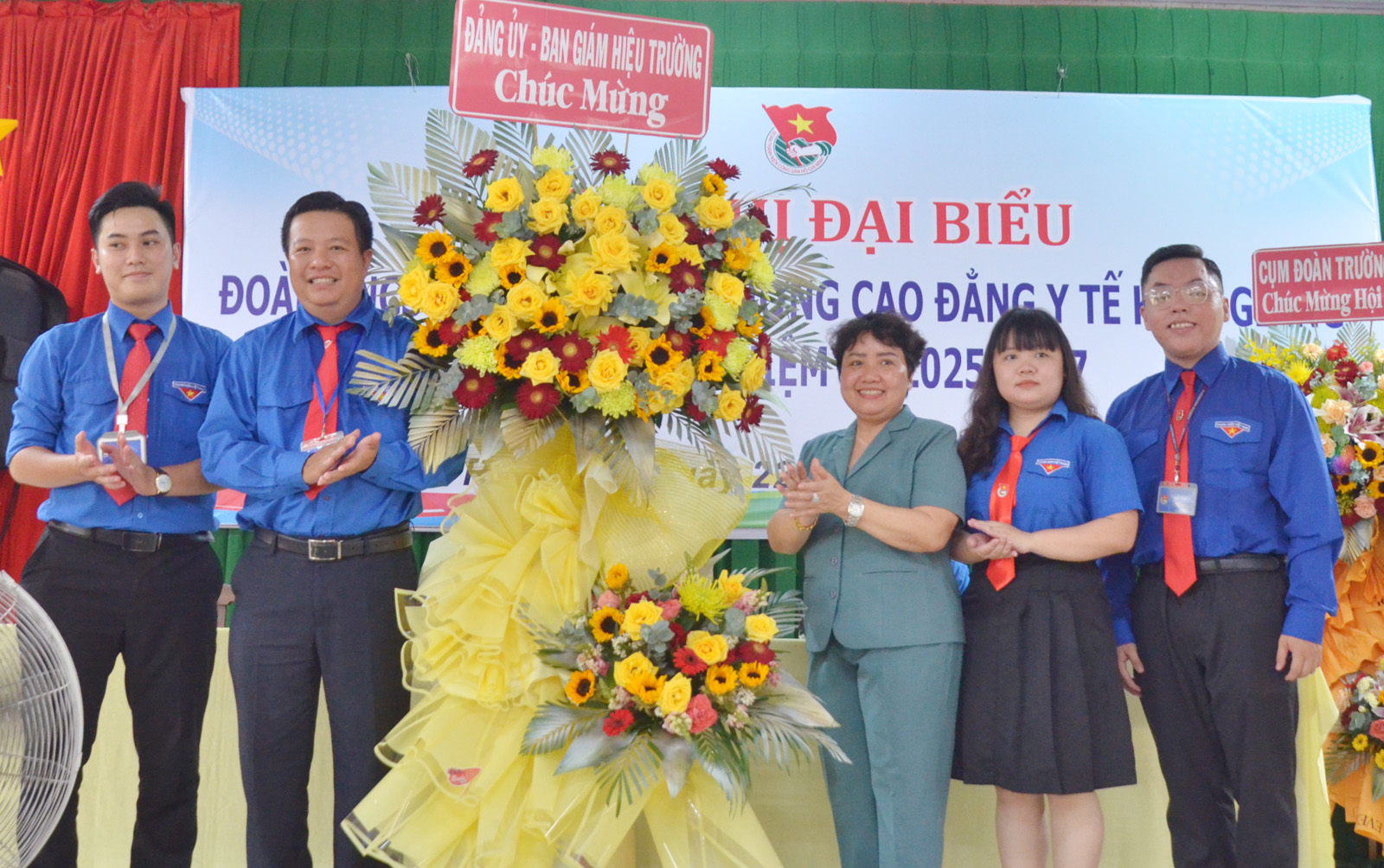 Đảng ủy, Ban Giám hiệu Trường Cao đẳng Y tế Kiên Giang tặng hoa chúc mừng Ban Chấp hành Đoàn trường.