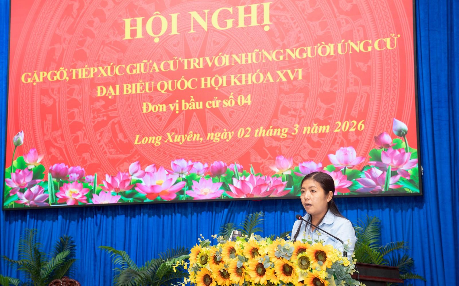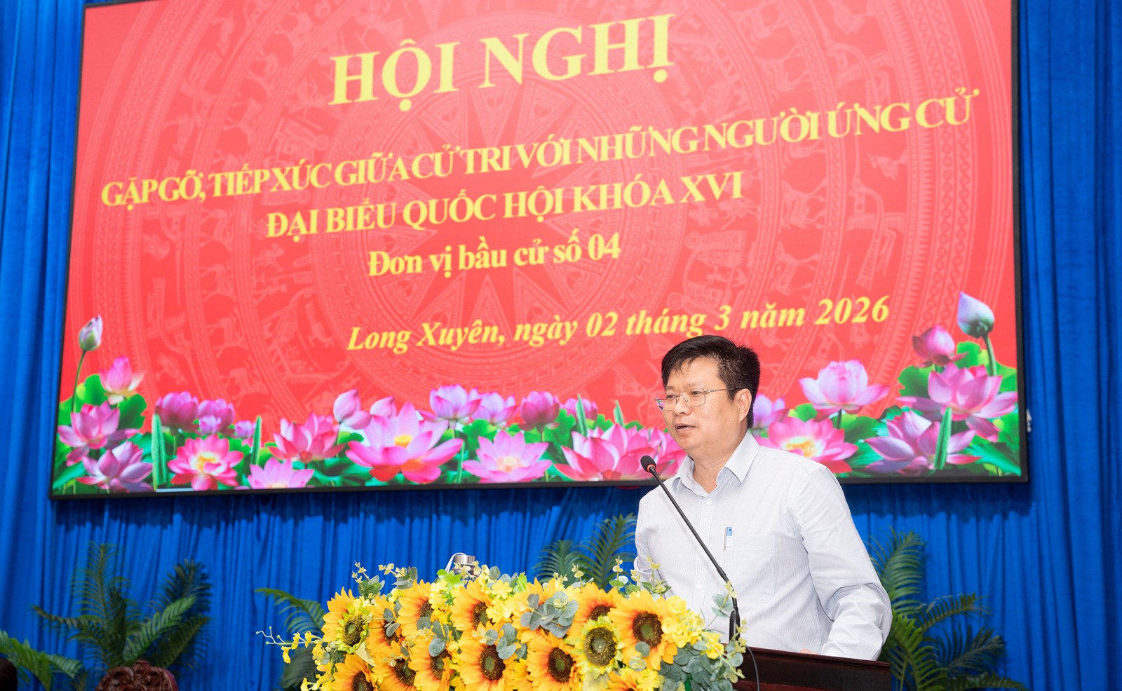 Sáng 2/3, tại Hội trường Trung tâm Hành chính phường Long Xuyên, Ban Thường trực Ủy ban MTTQ Việt Nam tỉnh tổ chức Hội nghị tiếp xúc cử tri theo hình thức trực tiếp và trực tuyến để các ứng cử viên đại biểu Quốc hội khóa XVI, đơn vị bầu cử số 4 thực hiện vận động bầu cử theo quy định của pháp luật.