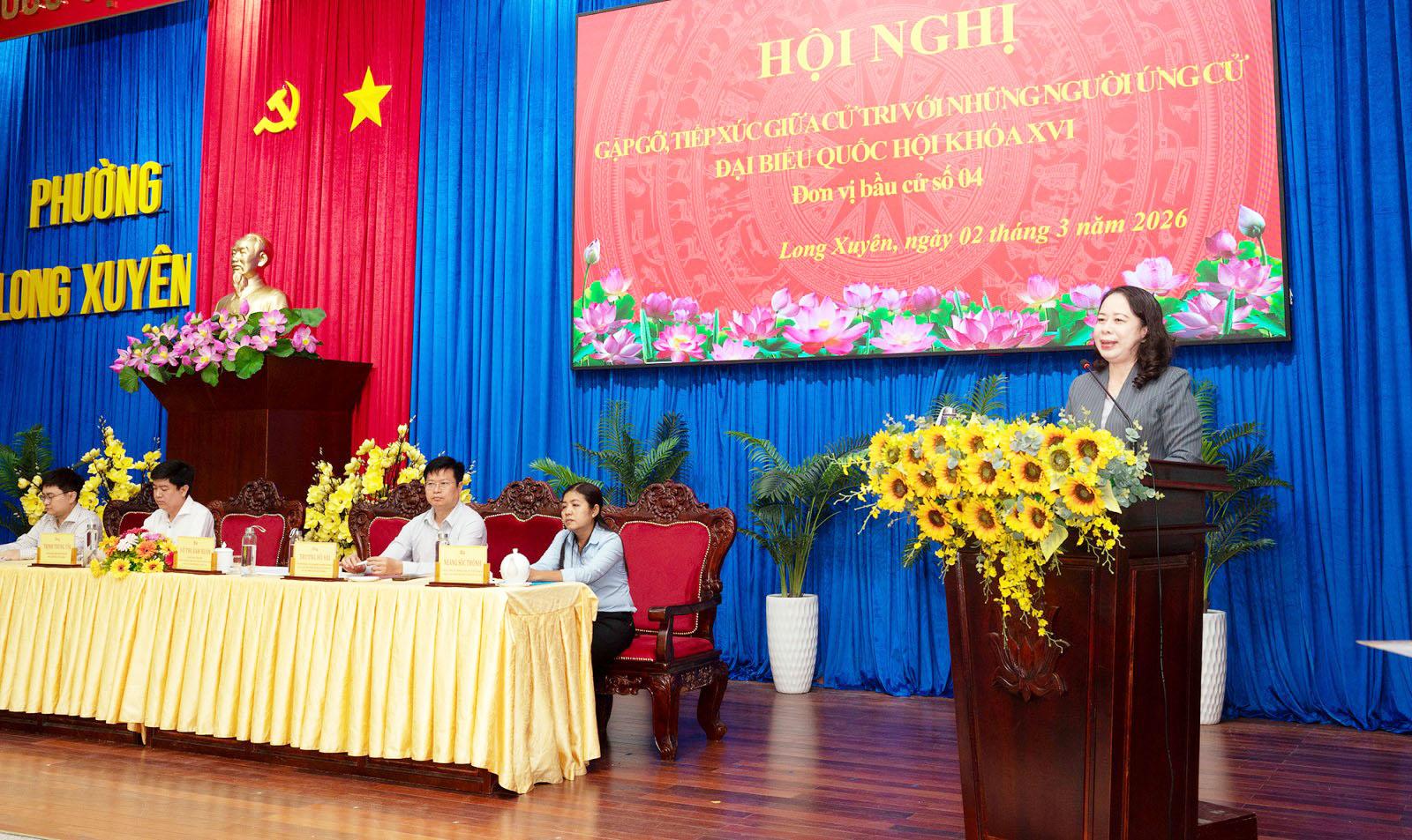 Thay mặt các ứng cử viên đại biểu Quốc hội Khóa XVI, Bí thư Trung ương Đảng, Phó Chủ tịch nước, Phó Chủ tịch Hội đồng bầu cử Quốc gia Võ Thị Ánh Xuân trân trọng cảm ơn cử tri về các ý kiến đóng góp chân thành, thiết thực, thể hiện sự quan tâm đến quá trình phát triển của tỉnh An Giang và đất nước. Qua đó, mong muốn cử tri và Nhân dân tiếp tục đồng hành cùng Đảng bộ, chính quyền tỉnh An Giang xây dựng quê hương ngày càng giàu đẹp, văn minh, hiện đại.