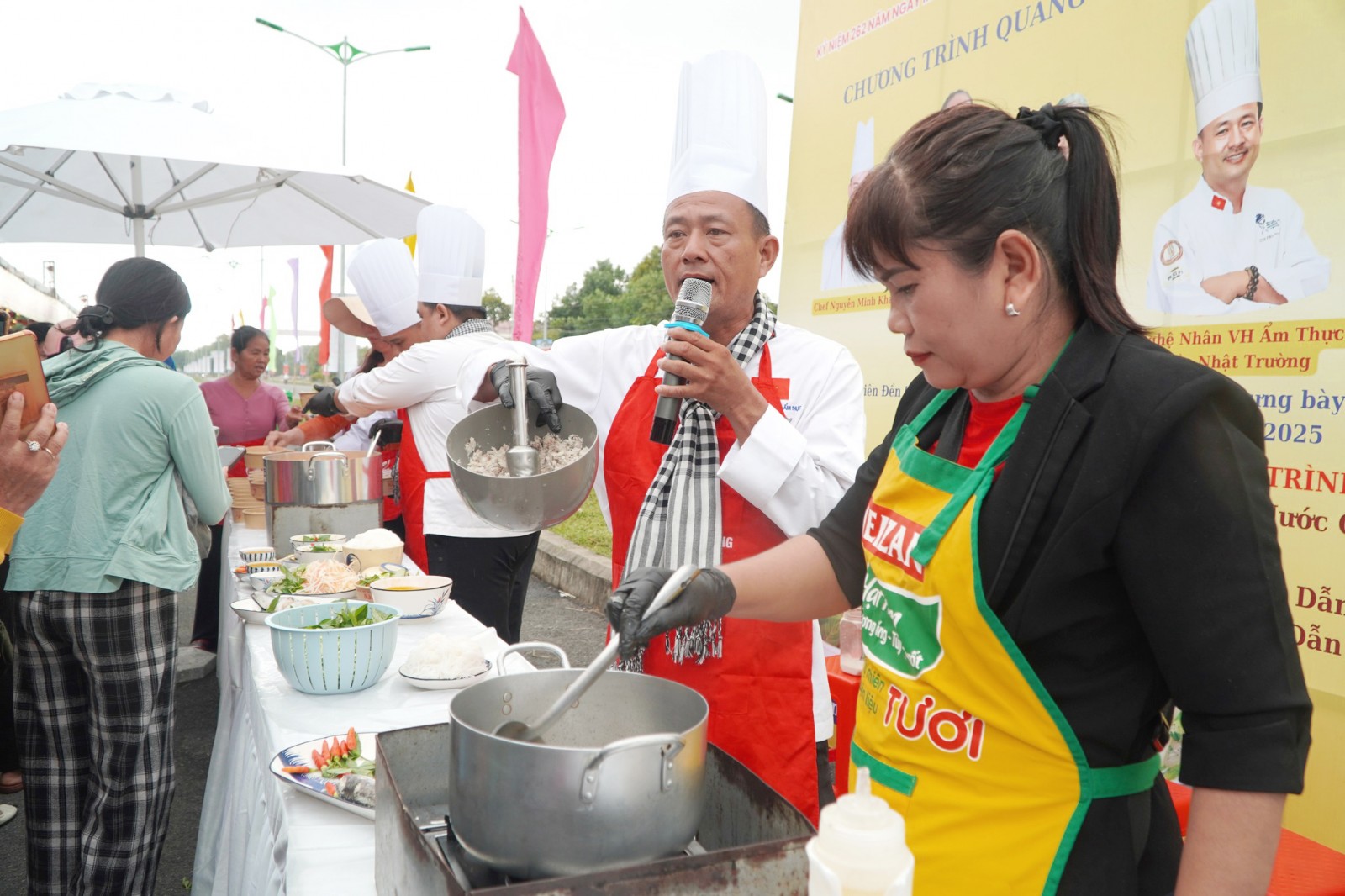 Điểm nhấn lễ hội năm nay là khu ẩm thực với 15 gian hàng. Du khách có thể thưởng thức hàng loạt món ngon, như: Bún kèn, bún nhâm, bún xiêm lo, bánh xèo, bánh khọt giòn, cơm ghẹ, bánh đùm, bánh đúc mặn… cùng nhiều món hải sản tươi sống được chế biến tại chỗ.