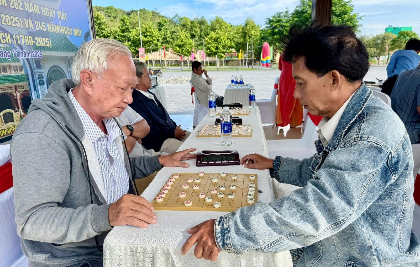 Các vận động viên tham gia Giải cờ tướng chào mừng lễ hội.