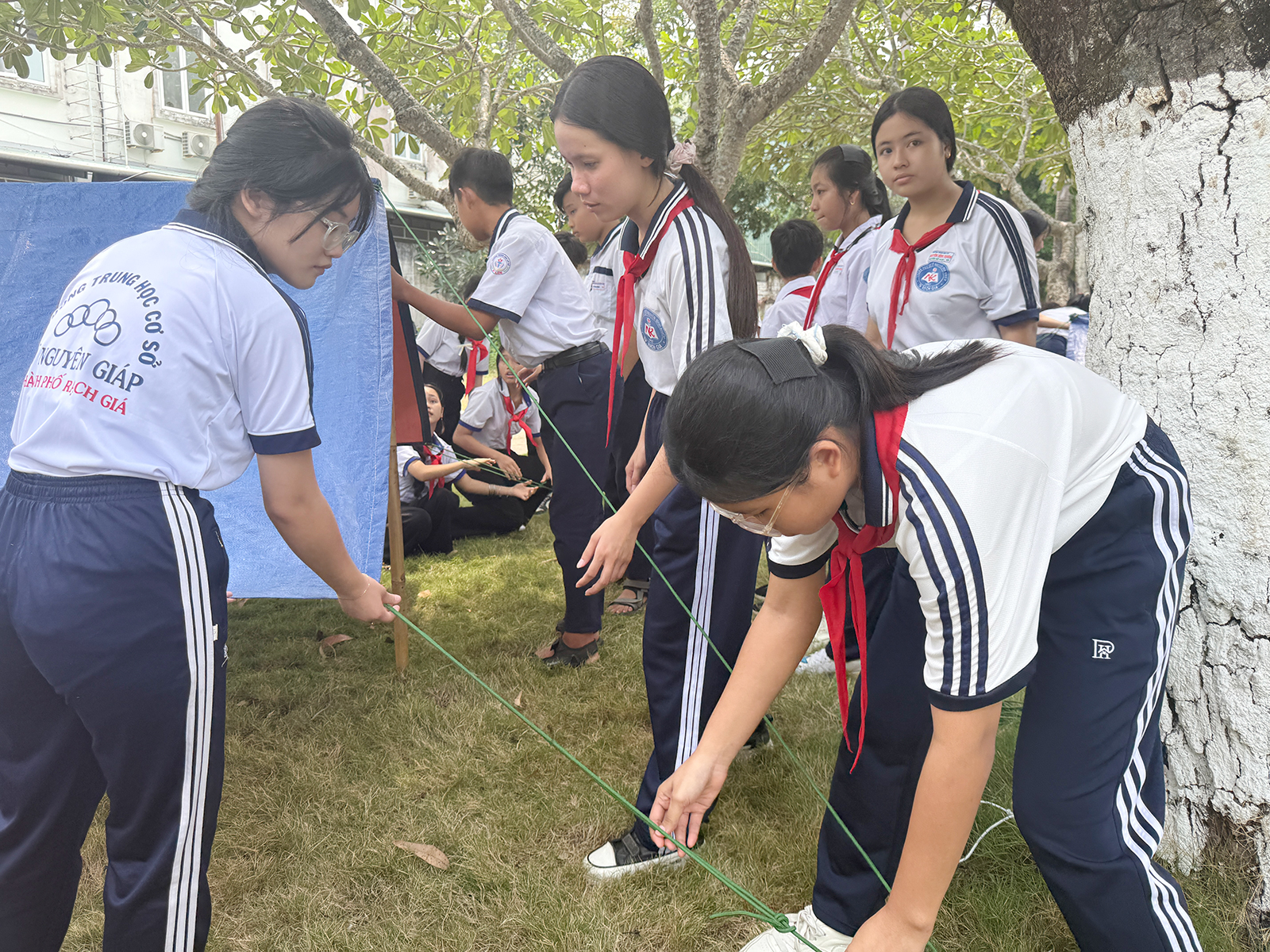 Có hơn 80 học sinh trong Ban Chỉ huy Liên đội năm học 2025 - 2026, hiện đang học tập, sinh hoạt tại các trường tiểu học, THCS trên địa bàn phường Rạch Giá, phường Vĩnh Thông tham gia lớp tập huấn.