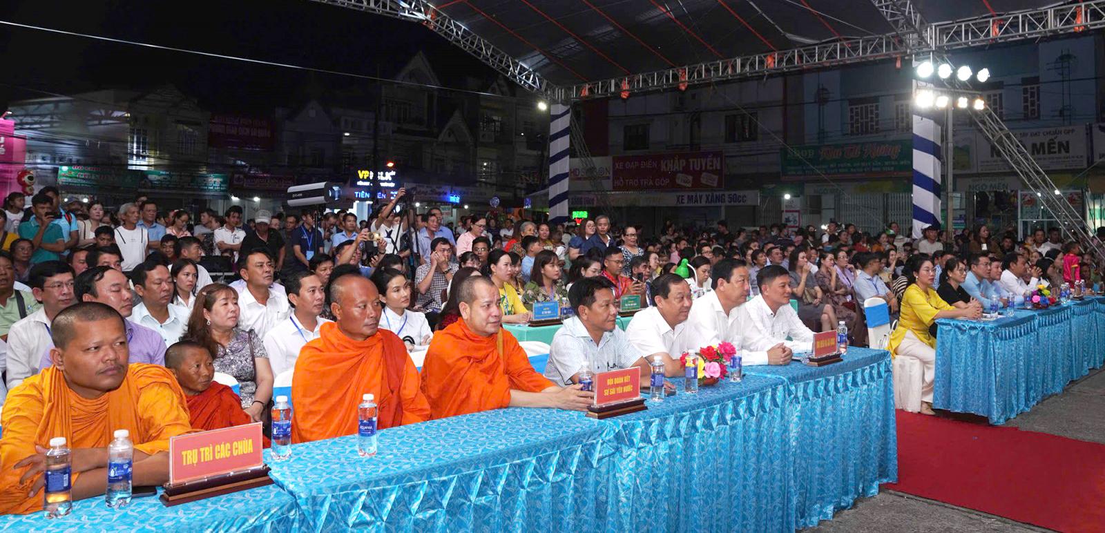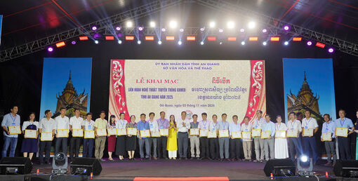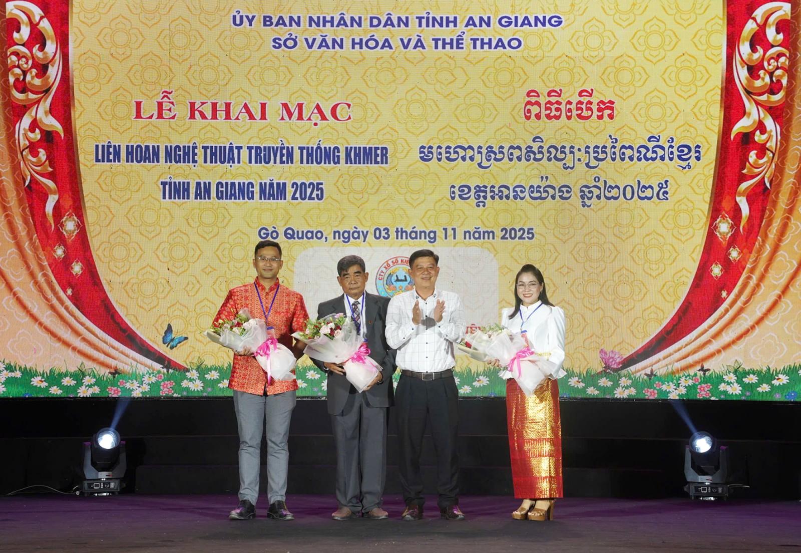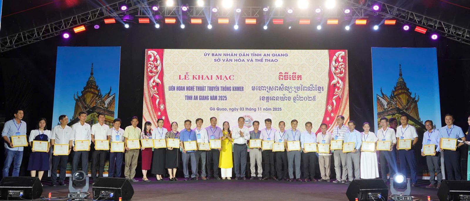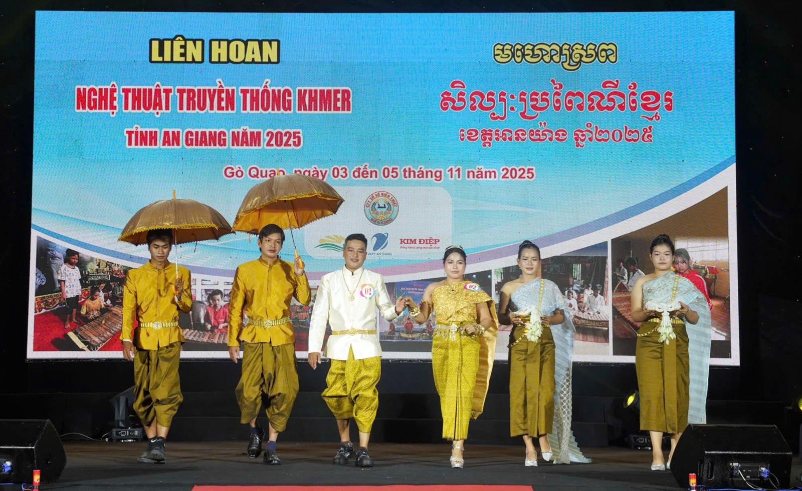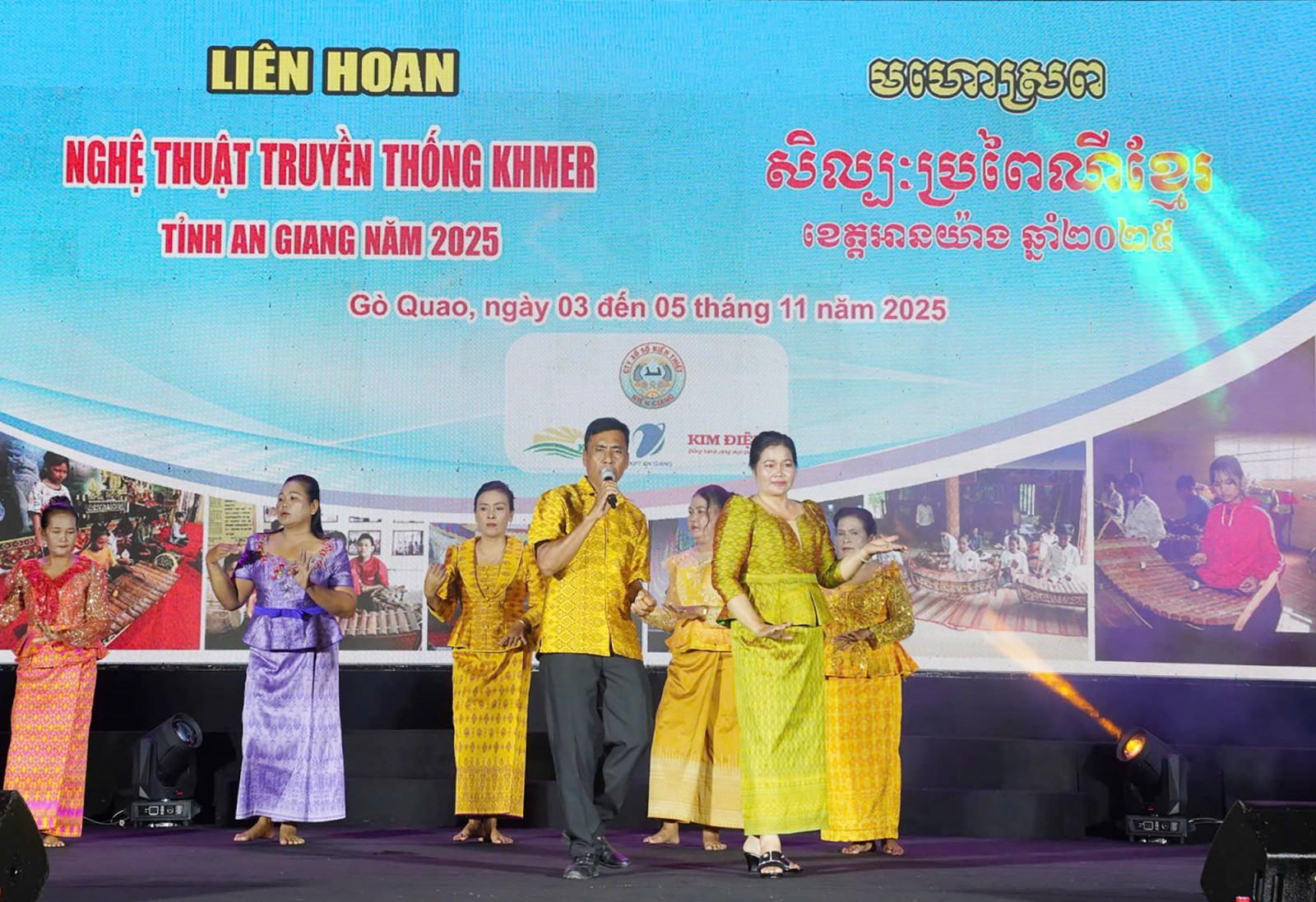Liên hoan nghệ thuật truyền thống Khmer tỉnh An Giang năm 2025 thu hút 333 nghệ nhân, diễn viên của 26 đội nghệ thuật truyền thống Khmer các xã, phường trên địa bàn tỉnh An Giang. Tham gia liên hoan, các đội dự thi biểu diễn các tiết mục văn nghệ, nghệ thuật truyền thống của dân tộc Khmer như hát, múa, trình diễn nhạc ngũ âm, đàn Cha-pây, trống Chhay- dâm, nhạc dây... với chủ đề ca ngợi Đảng, Bác Hồ; quê hương, đất nước; ca ngợi truyền thống đoàn kết, gắn bó giữa cộng đồng các dân tộc Việt Nam. Bên cạnh đó, giới thiệu những nét độc đáo của trang phục truyền thống dân tộc Khmer Nam bộ.