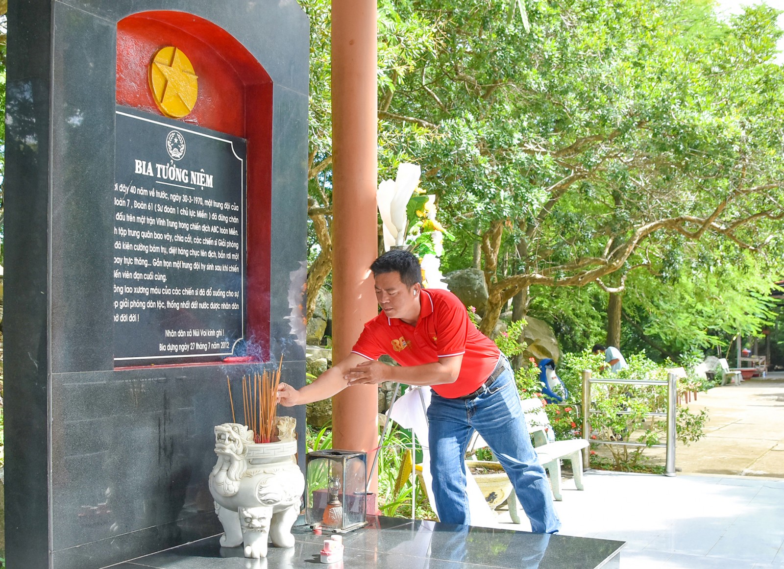 Bia tưởng niệm các chiến sĩ hy sinh trên núi Voi. Ảnh: PHẠM HIẾU
