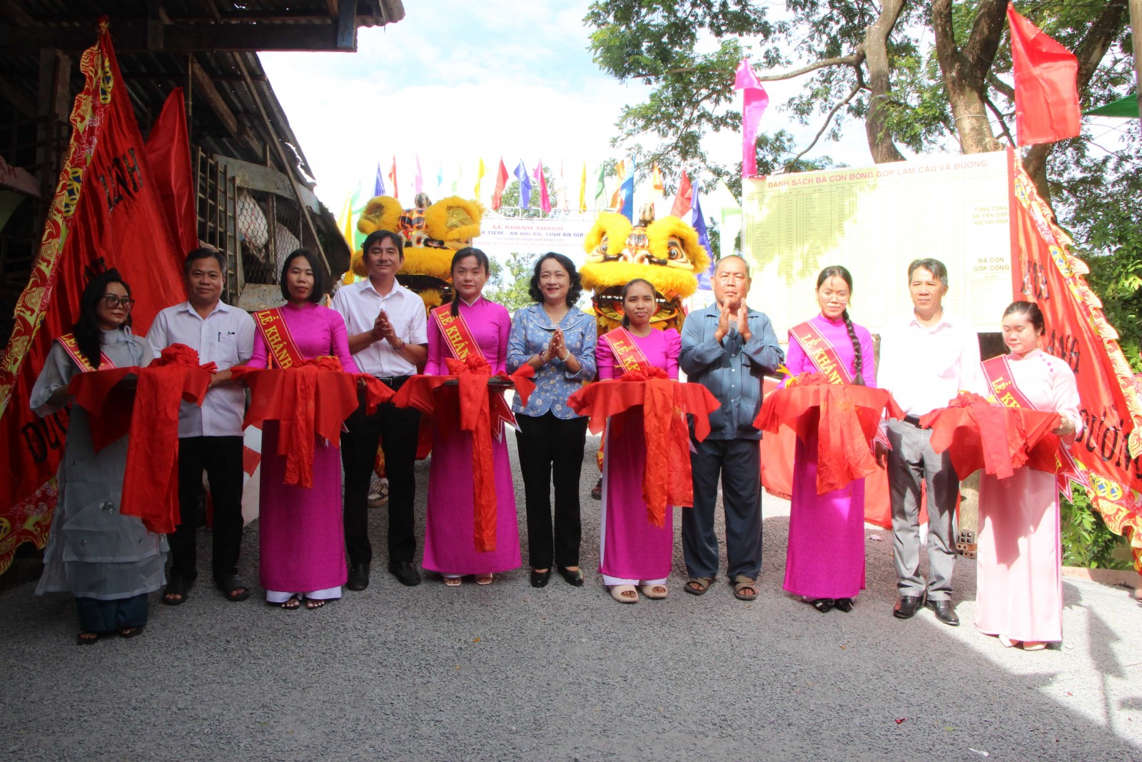 Đại biểu thực hiện nghi thức cắt băng khánh thành cầu.