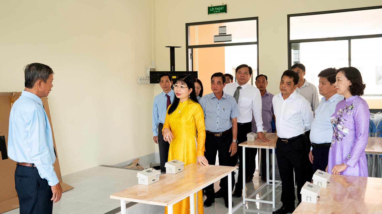 Đồng chí Nguyễn Thị Minh Thúy đề nghị sau lễ khánh thành, ngành giáo dục và đào tạo tiếp tục quan tâm bố trí, bồi dưỡng đội ngũ cán bộ, giáo viên đảm bảo về trình độ chuyên môn, nghiệp vụ, nâng cao chất lượng dạy và học.