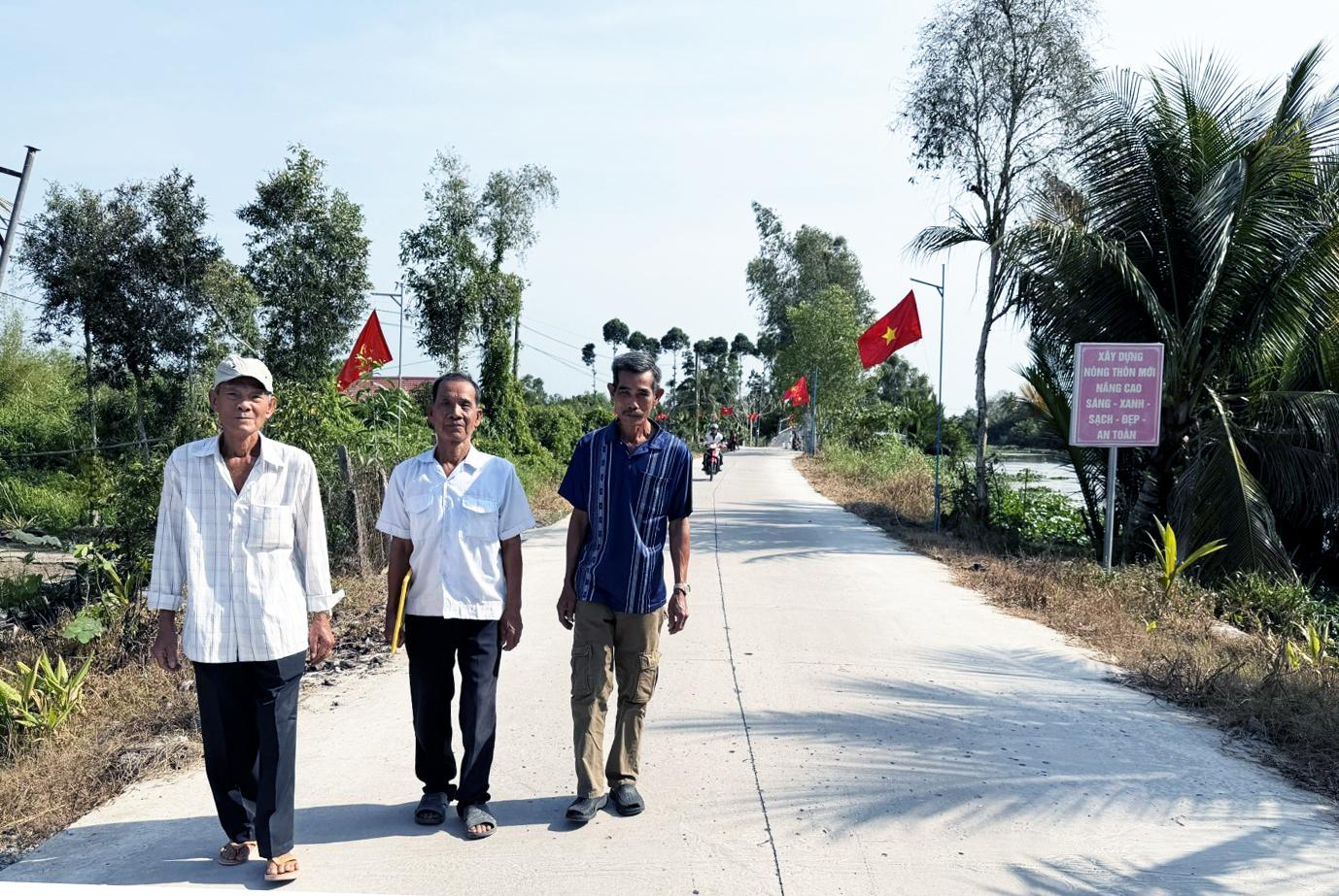 Người dân đi lại trên tuyến đường Khu căn cứ Tỉnh ủy, xã Vĩnh Hòa Hưng.