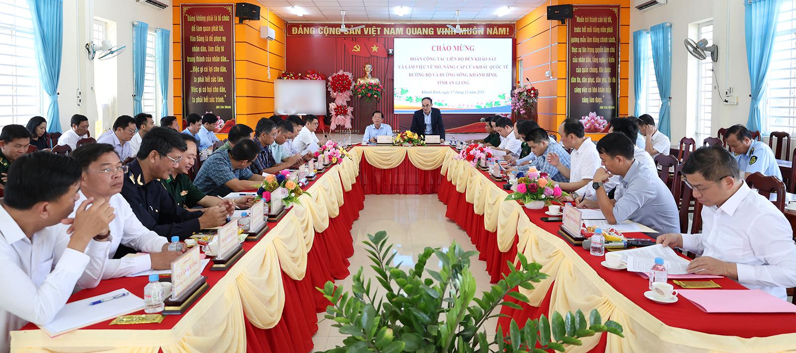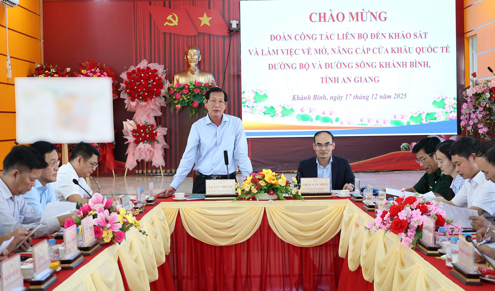 Phát biểu tại buổi làm việc, Phó Chủ tịch UBND tỉnh An Giang Lê Văn Phước khẳng định việc mở, nâng cấp Cửa khẩu quốc tế Khánh Bình là yêu cầu khách quan, phù hợp với quy hoạch phát triển và nhu cầu thực tiễn của địa phương.