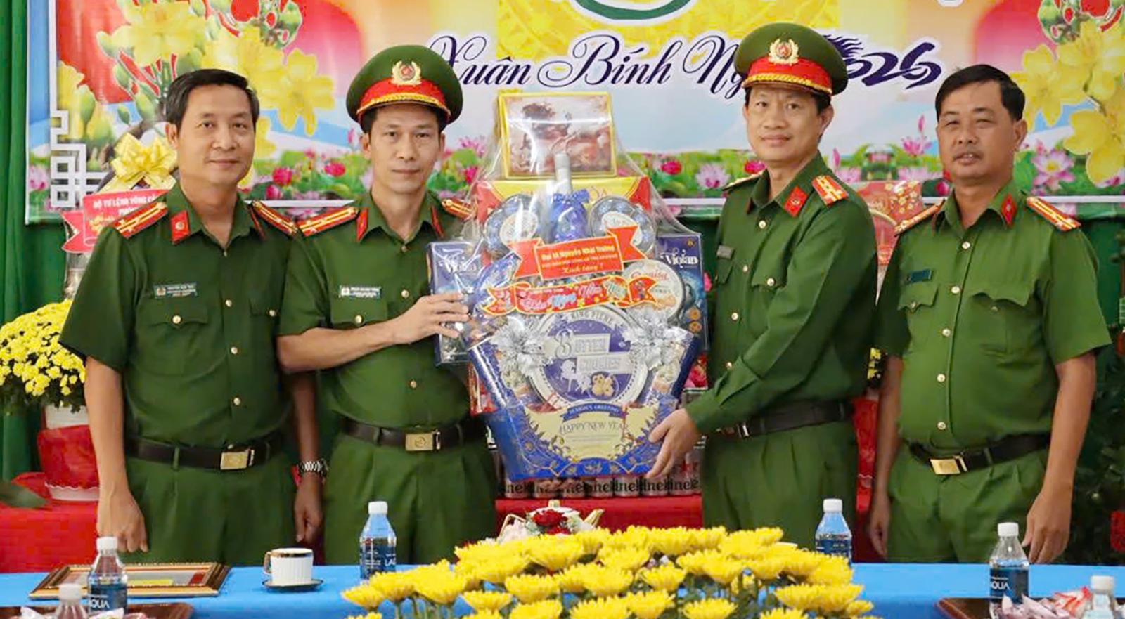 Đại tá Nguyễn Nhật Trường, Phó Giám đốc Công an tỉnh chúc tết, tặng quà Phòng Cảnh sát kinh tế.